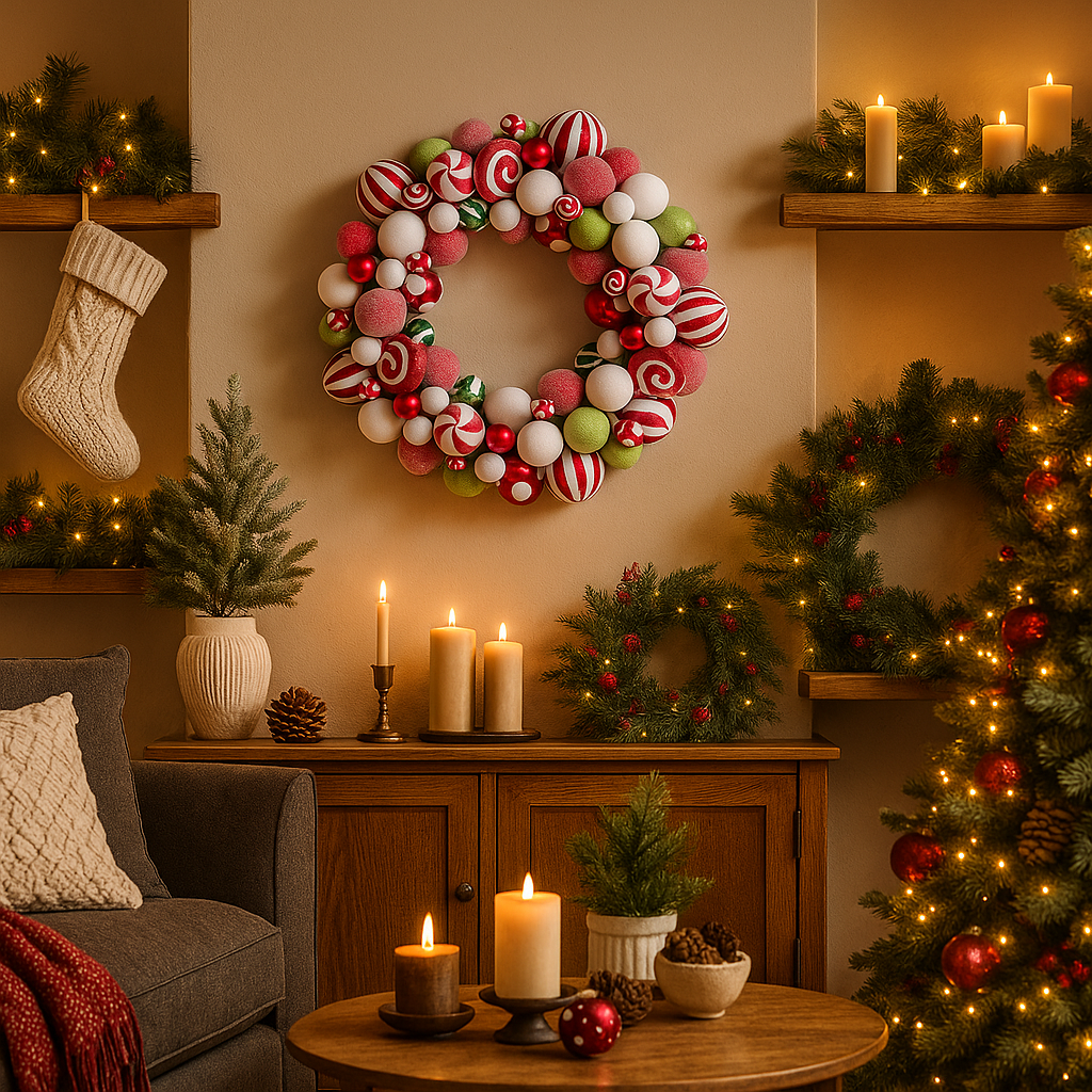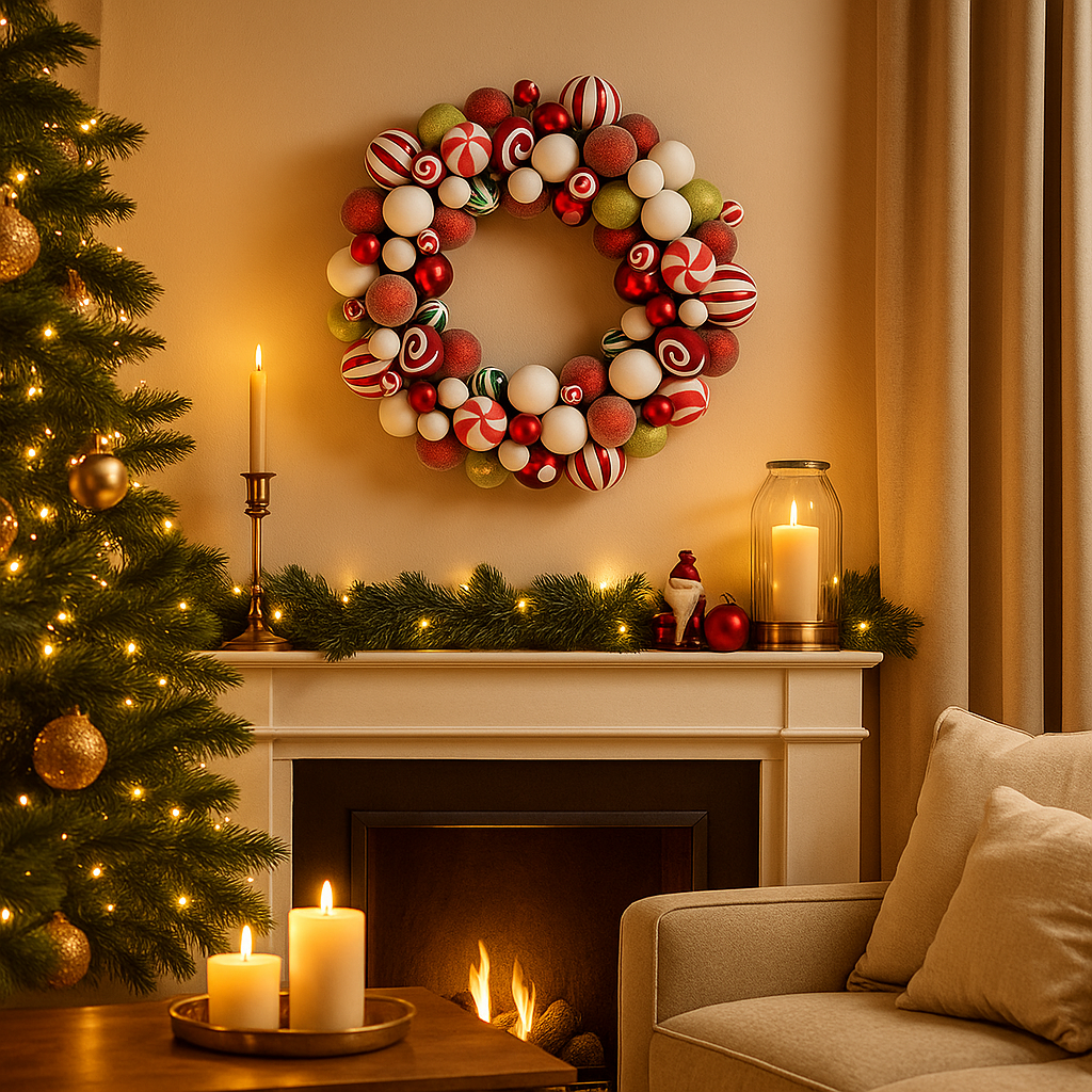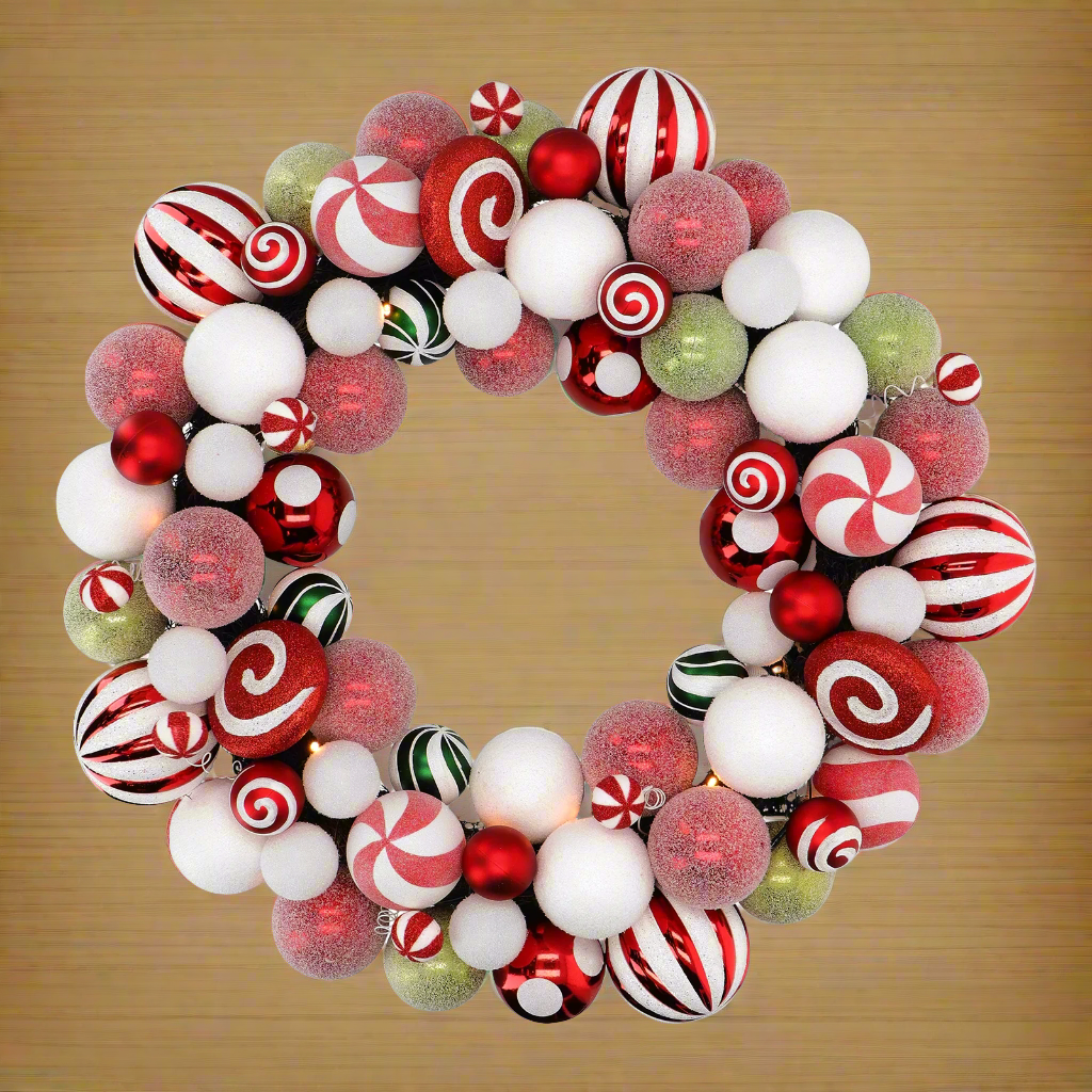 La ghirlanda tonda natalizia con palline e luce LED è una decorazione sofisticata e festosa, perfetta per arricchire l'atmosfera natalizia della tua casa.