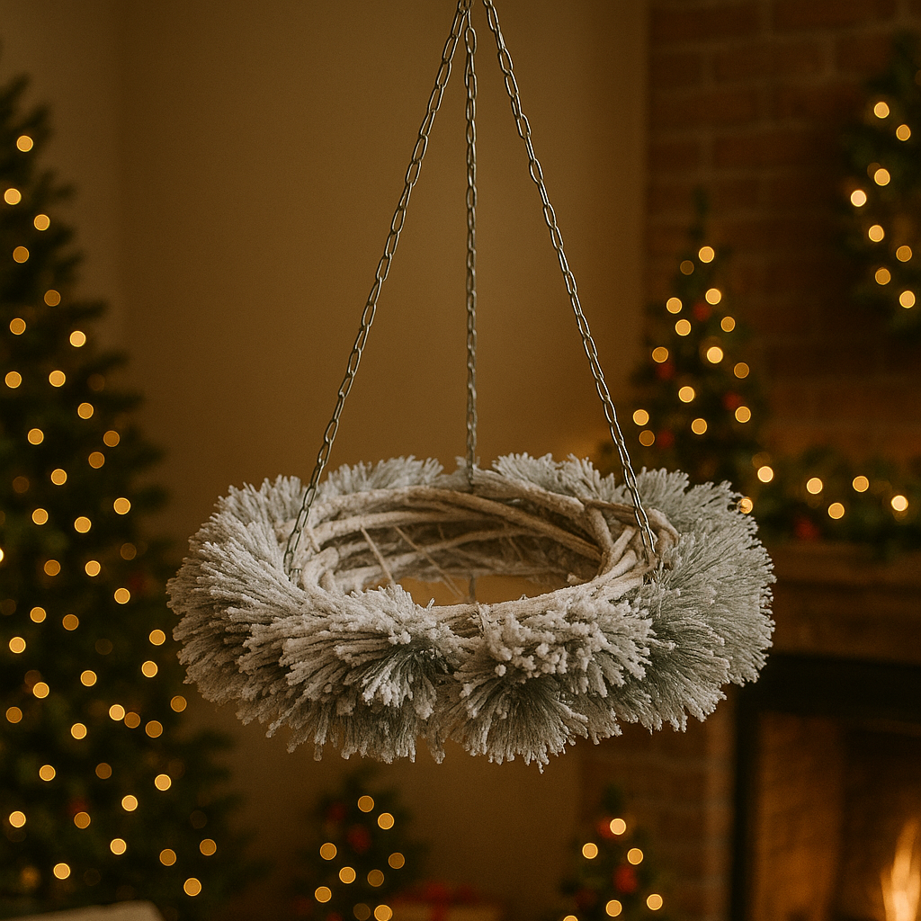 Ghirlanda tonda natalizia da appendere "Snow" con griglia in metallo