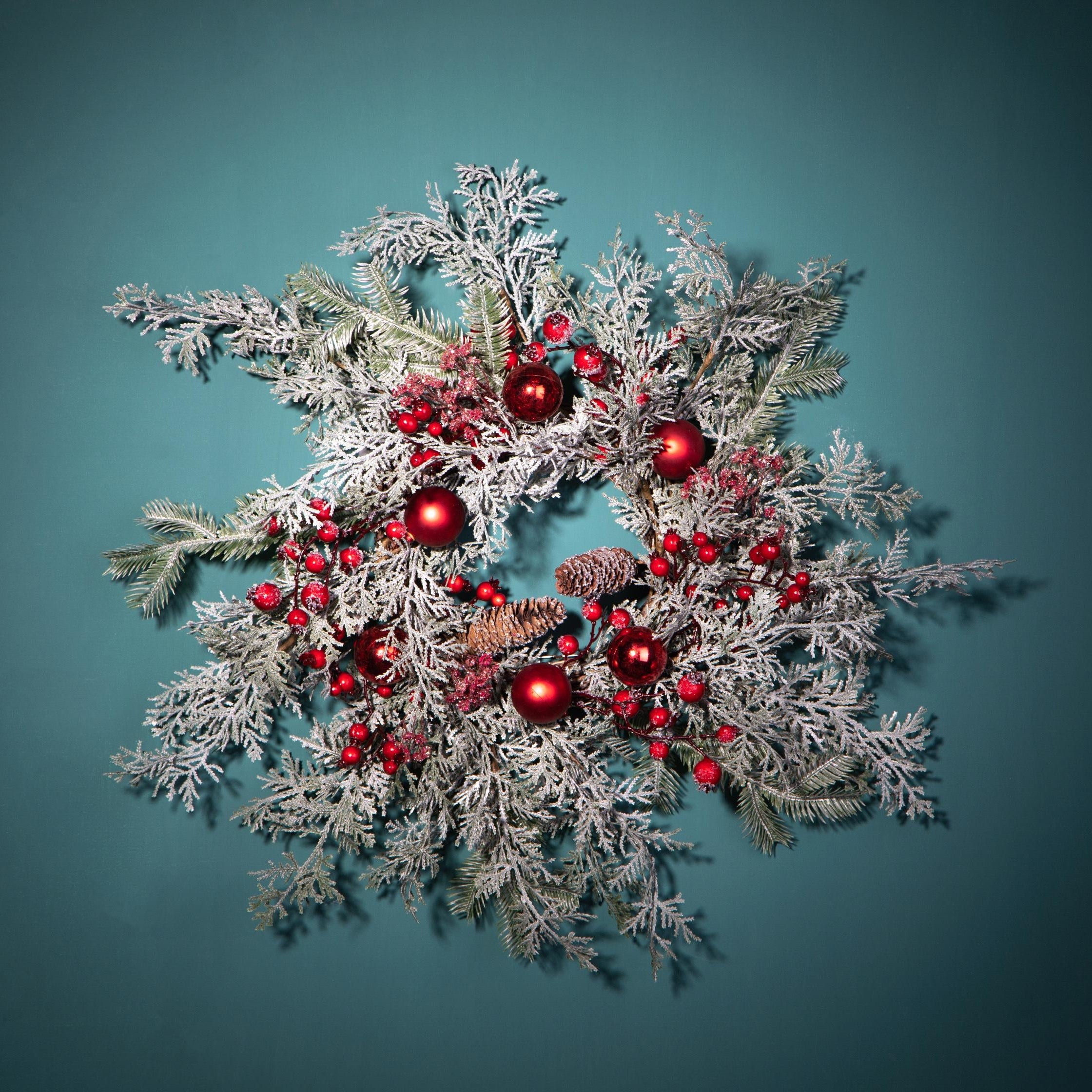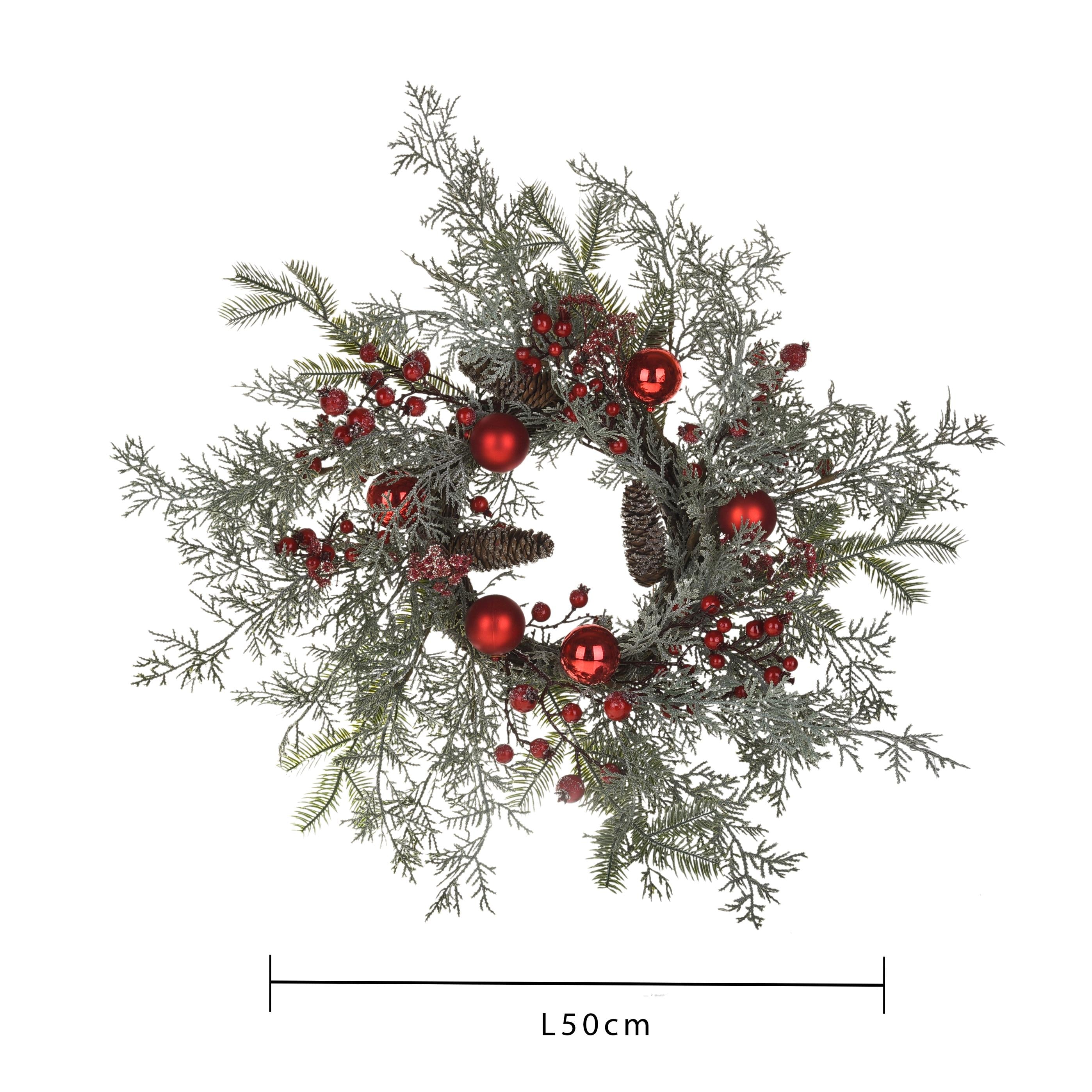 Ghirlanda tonda vischio con palline corona natalizia, dietro porta da 60 cm