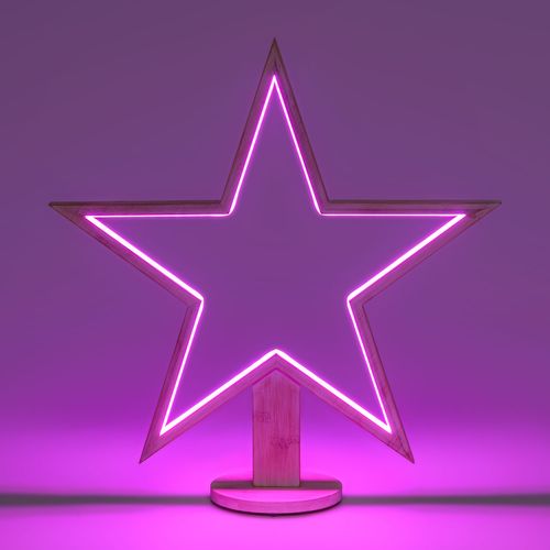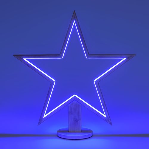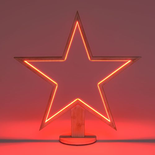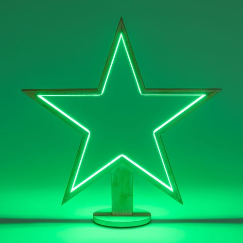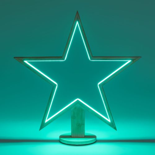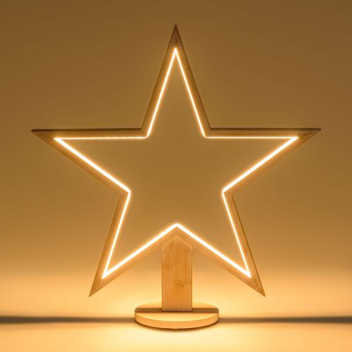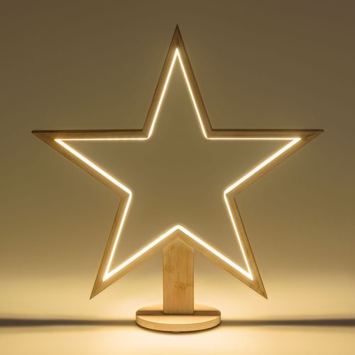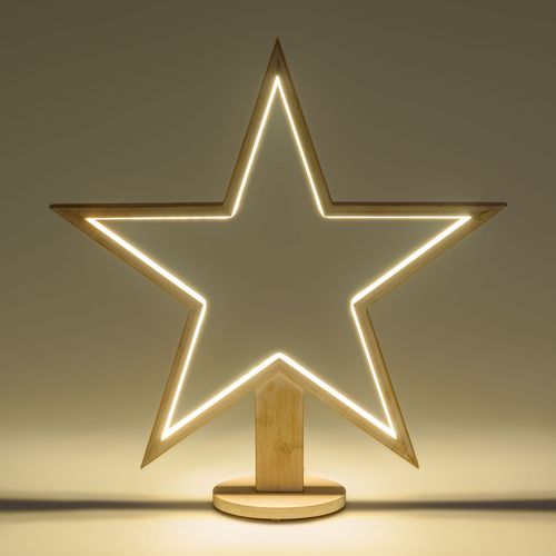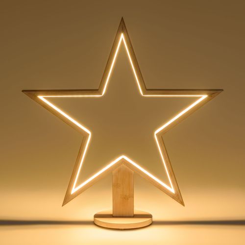 Questa figura luminosa fa parte di una più ampia collezione di addobbi in legno dalle diverse forme e dimensioni.