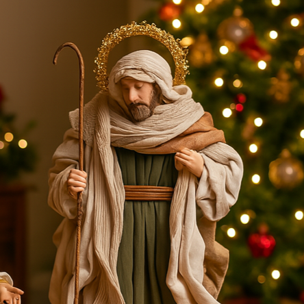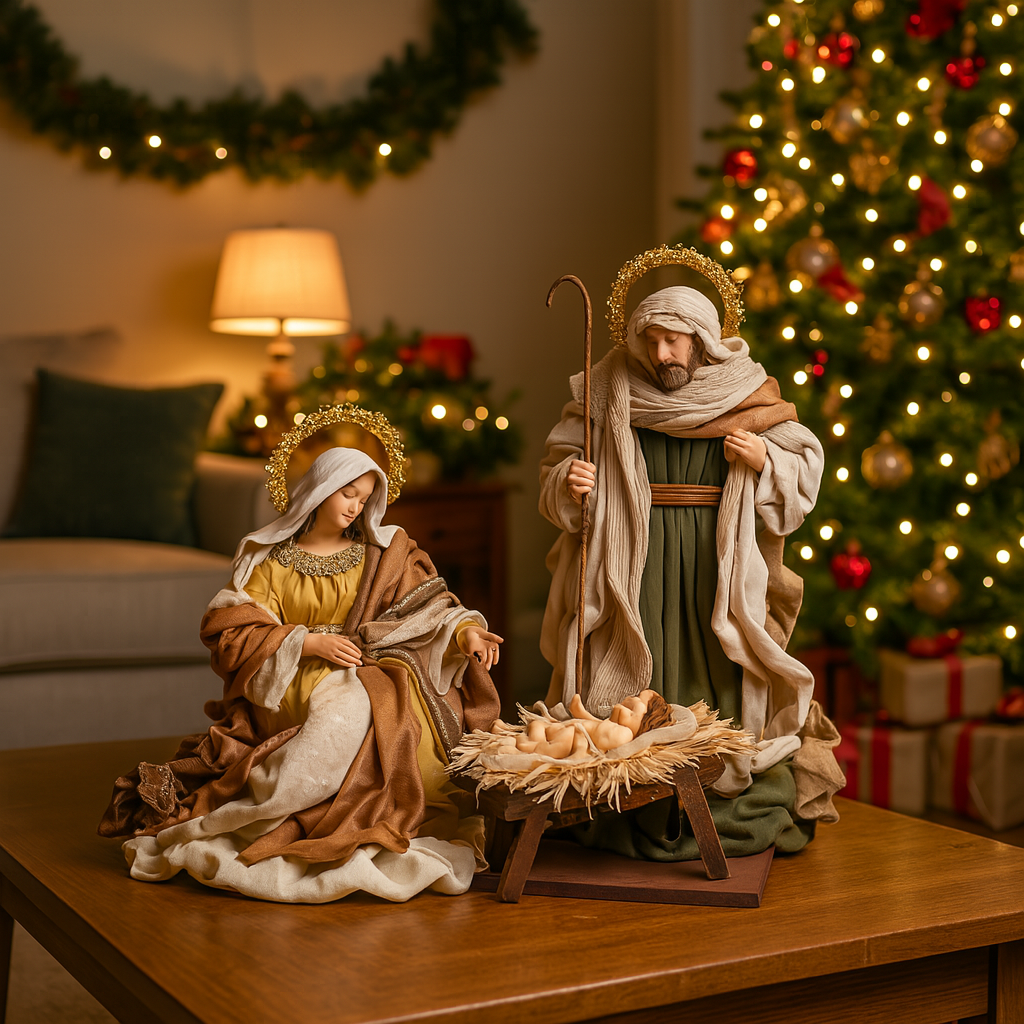 Natività in Tessuto Verde e Oro per presepe Natalizio h 36 cm