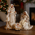 Composta da tre personaggi principali, realizzati interamente in resina di alta qualità, offre dettagli realistici nei volti e nelle pieghe delle vesti, trasmettendo calore e spiritualità.