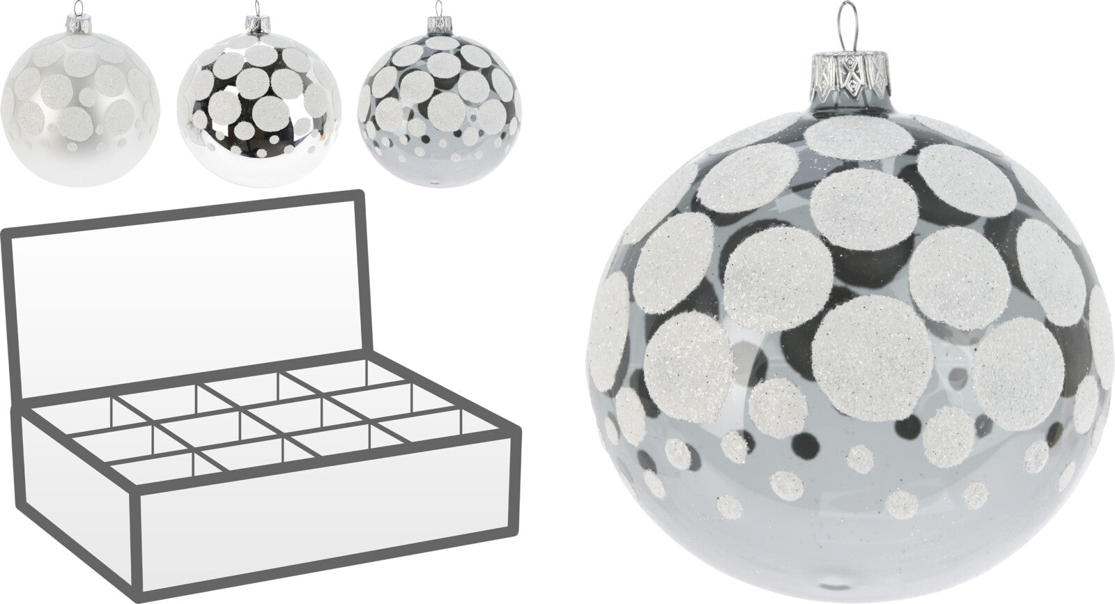 Palline per albero di Natale, in Vetro, con glitter a pois, Ø 80 mm, 12 pezzi