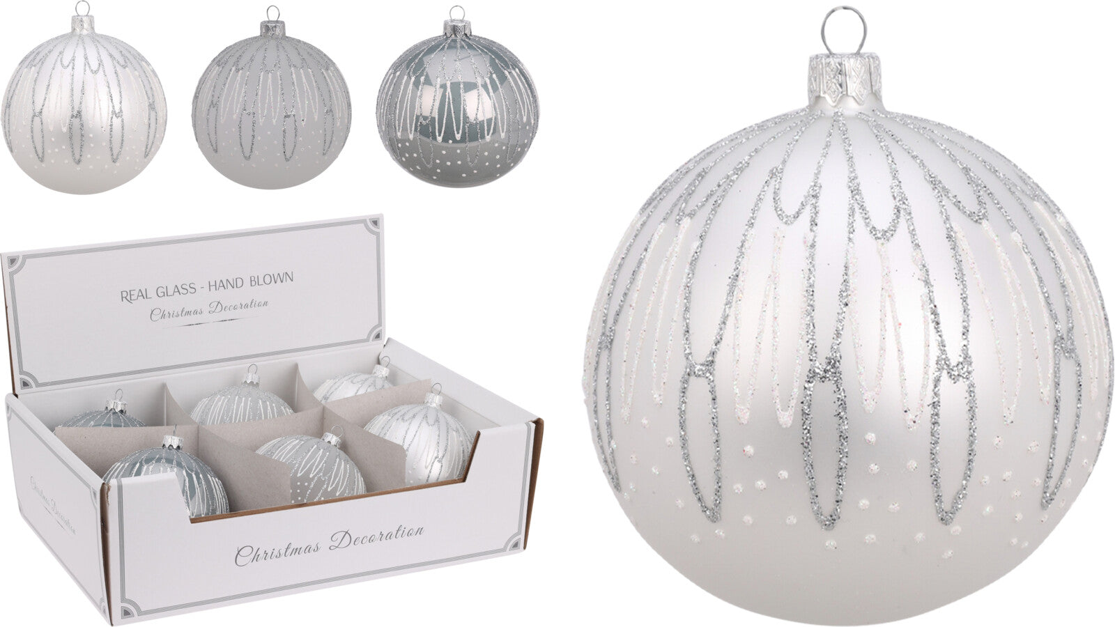 Palline per albero di Natale, in Vetro, con glitter decorativi, Ø 100 mm, 6 pezzi