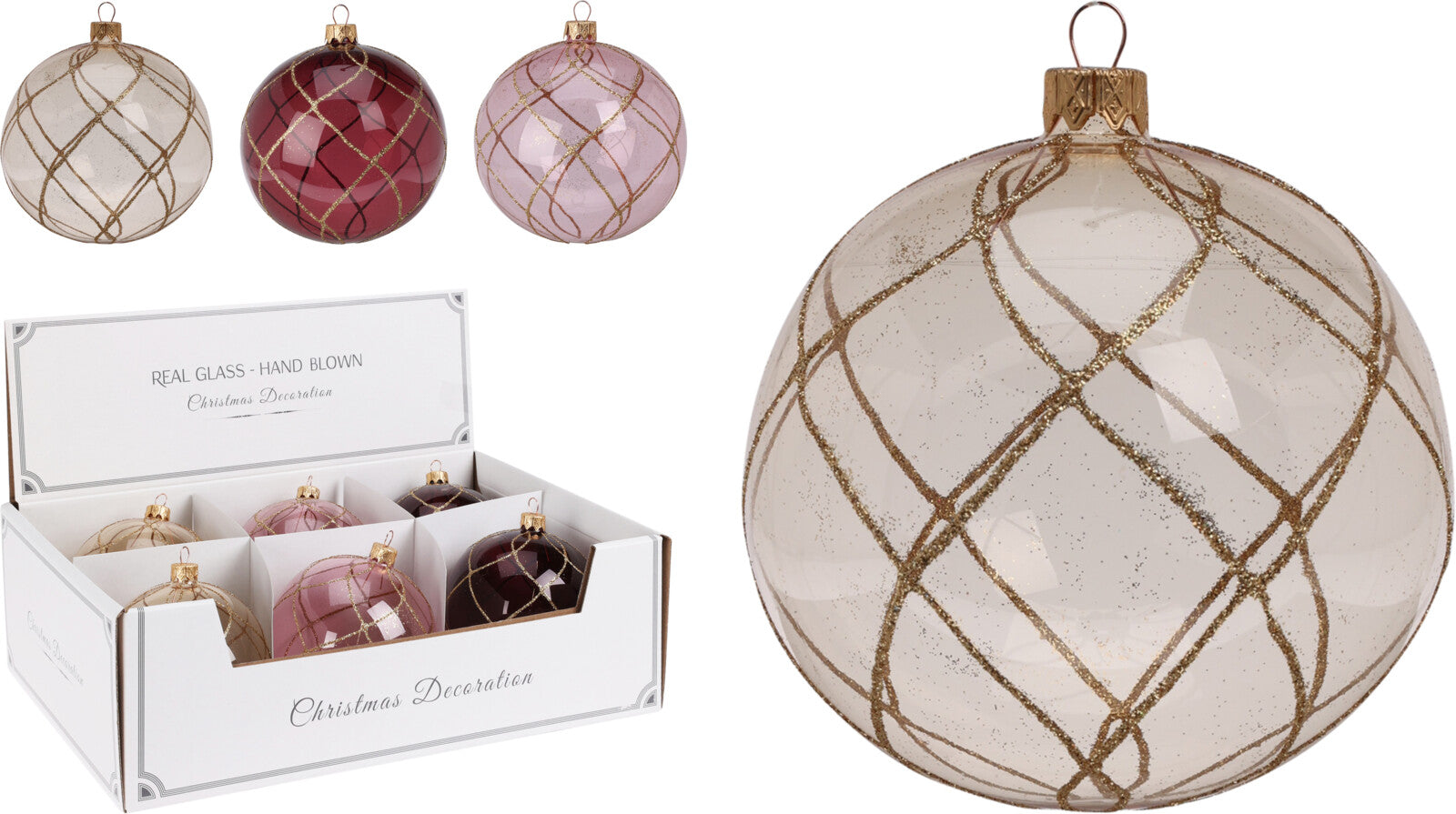 Palline per albero di Natale, in Vetro, con glitter color oro, Ø 100 mm, 6 pezzi