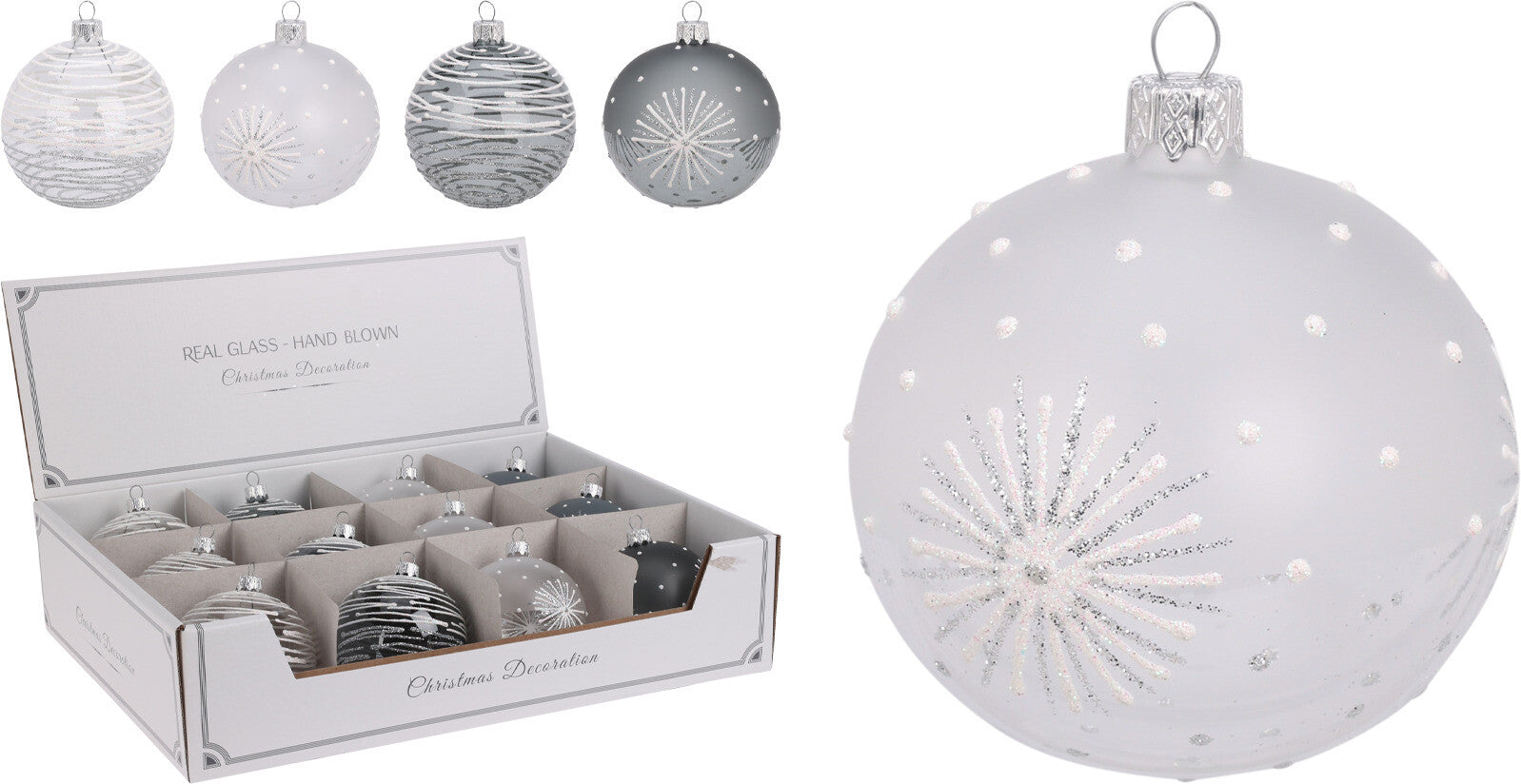 Palline per albero di Natale, in Vetro, con glitter, Ø 80 mm, 12 pezzi