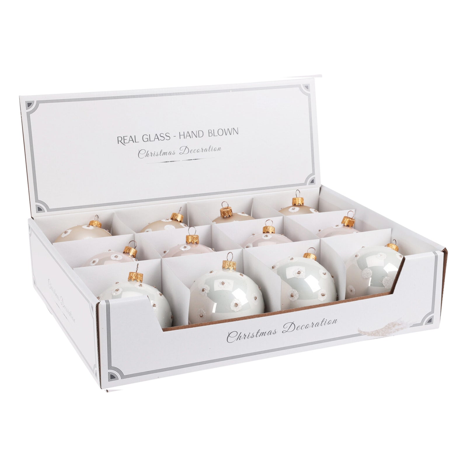 - La confezione comprende 12 palline di 3 modelli differenti