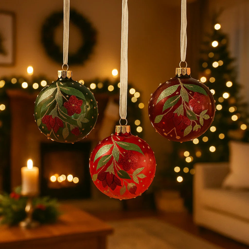 .Palline in vetro lucide con glitter a fantasia ideali per addobbare il vostro Albero di Natale.