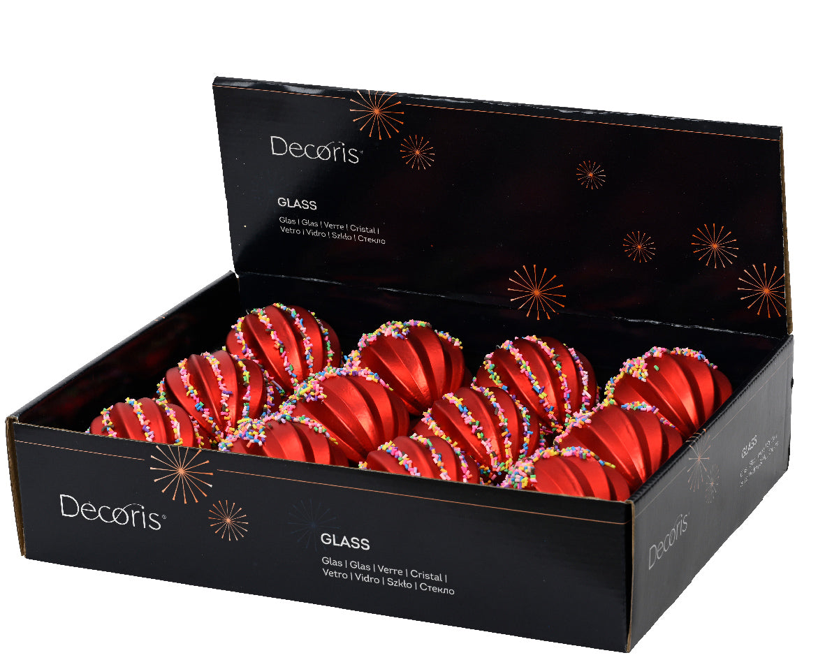 Palline per albero di Natale in vetro decorato rosso con decorazioni per dolci, 12 pezzi