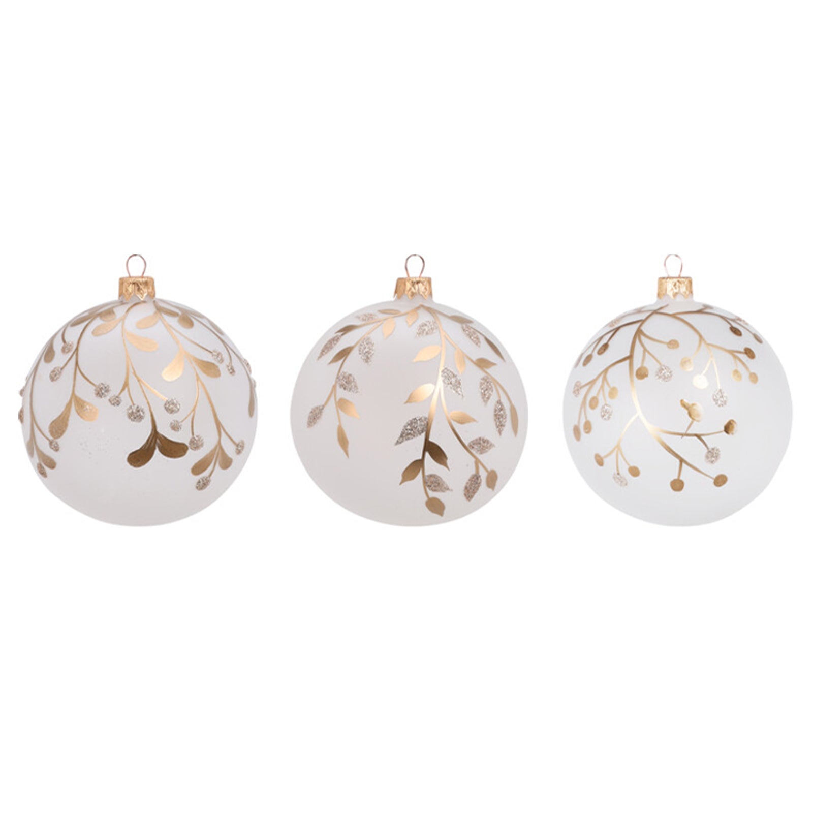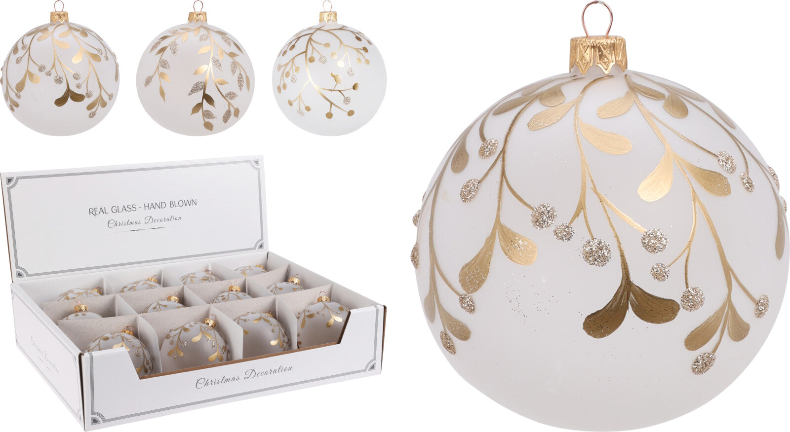 Palline per albero di Natale, in Vetro, foglia con glitter, Ø 80 mm, 12 pezzi