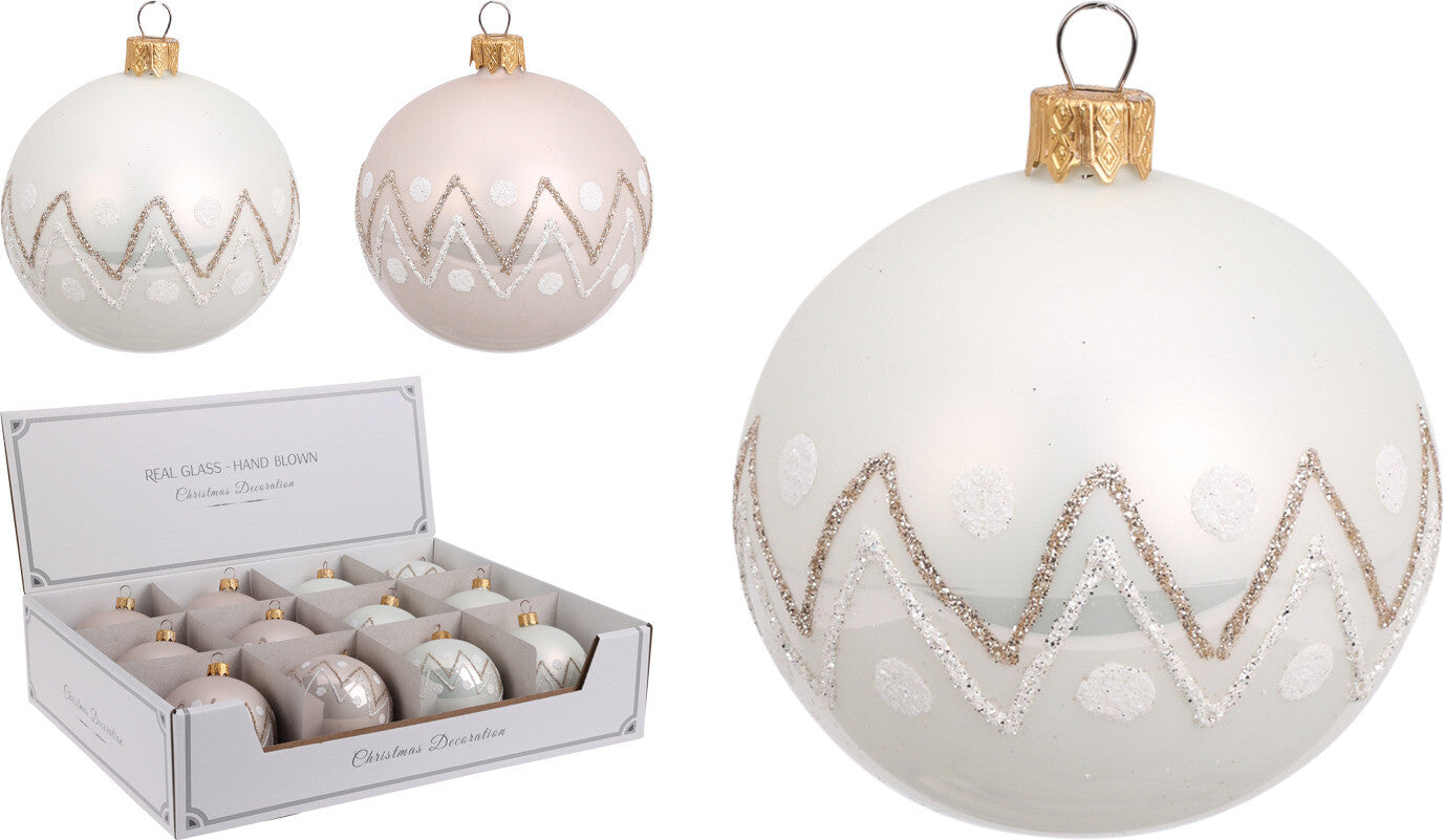 Palline per albero di Natale, in Vetro, glitter a zigzag, Ø 80 mm, 12 pezzi