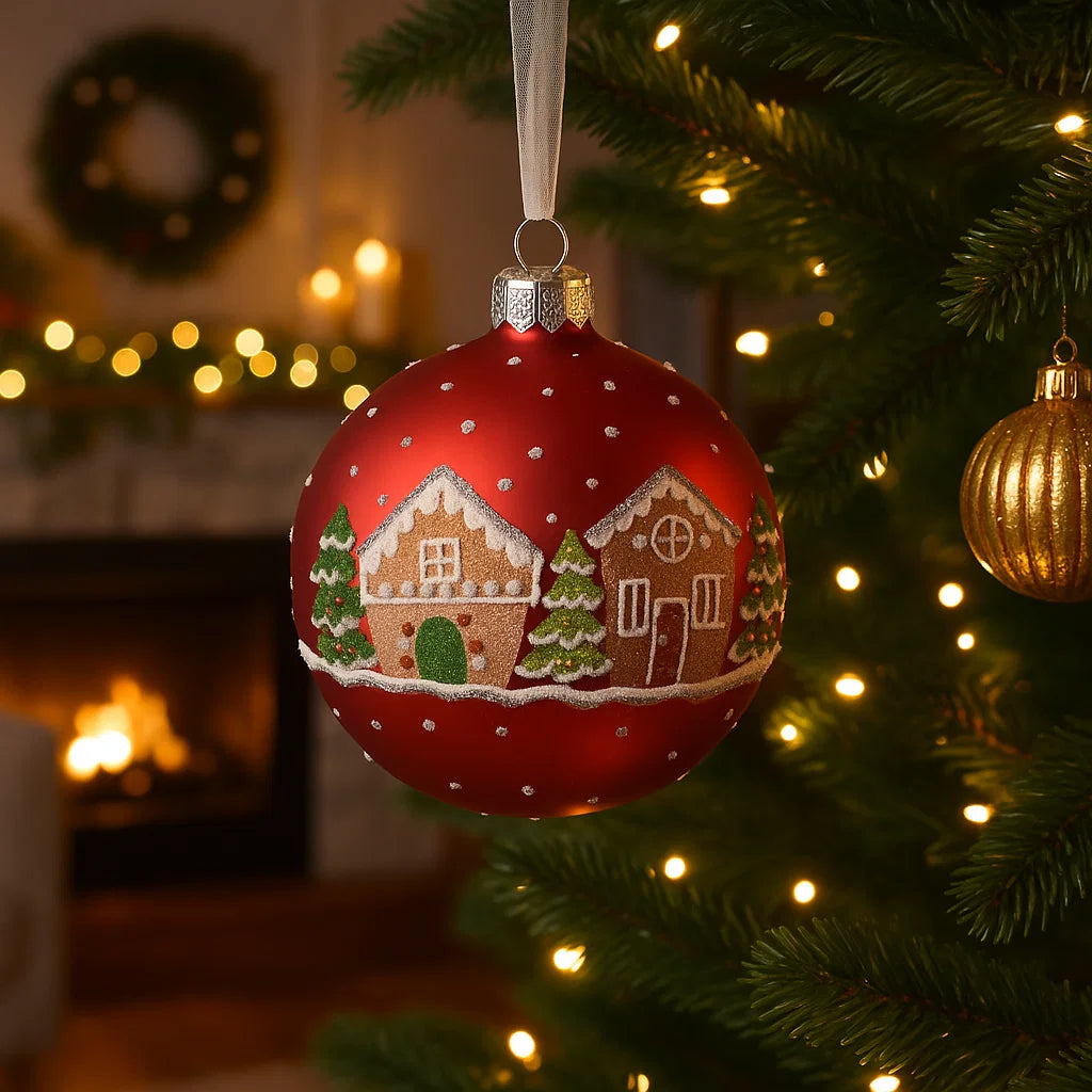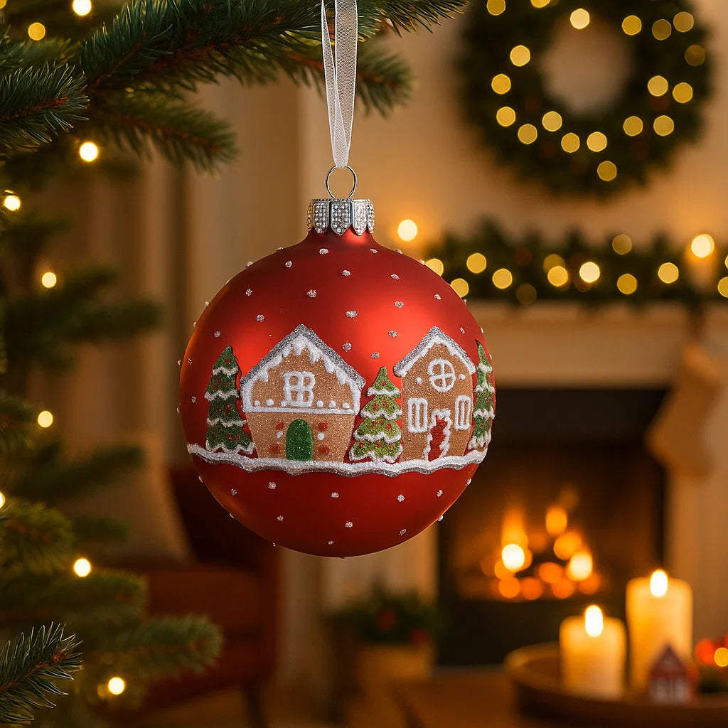 Palline rosse opache con paesaggio innevato decorazione per albero di natale da 8 cm, confezione da 6 pezzi
