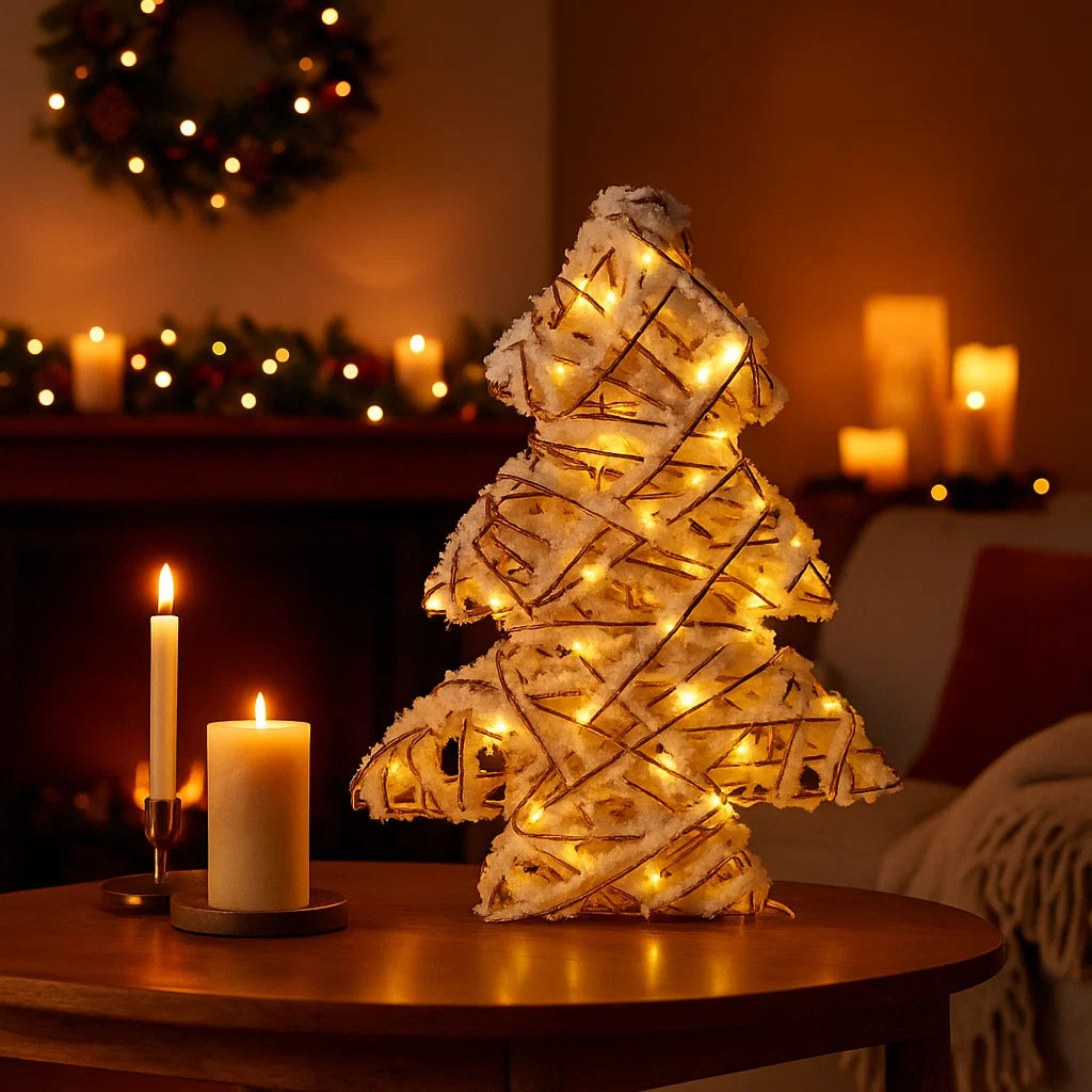 Questa decorazione natalizia, dal design sottile e contemporaneo, è perfetta per creare un'atmosfera calda e accogliente, valorizzando ogni ambiente con una delicata luminosità festiva.