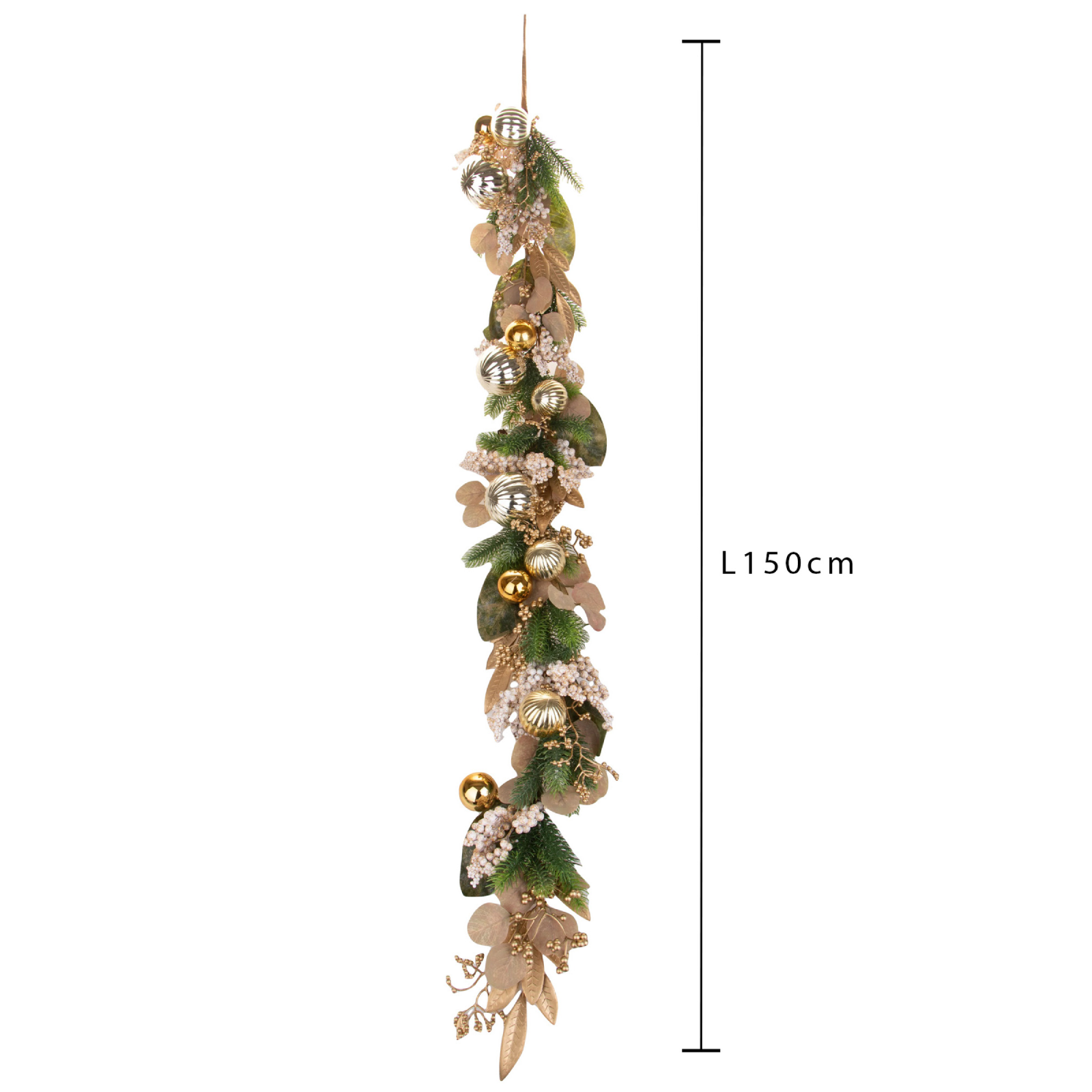 Rendi unica la tua casa durante le feste con questa raffinata ghirlanda bianca e oro, arricchita da eleganti palline decorative.