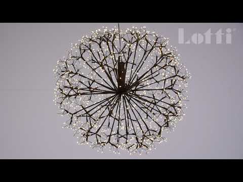 Questa sfera è composta da rami bianchi che si diramano da un'anima centrale rigida, terminando in ciuffi di microled che creano un effetto luminoso unico.