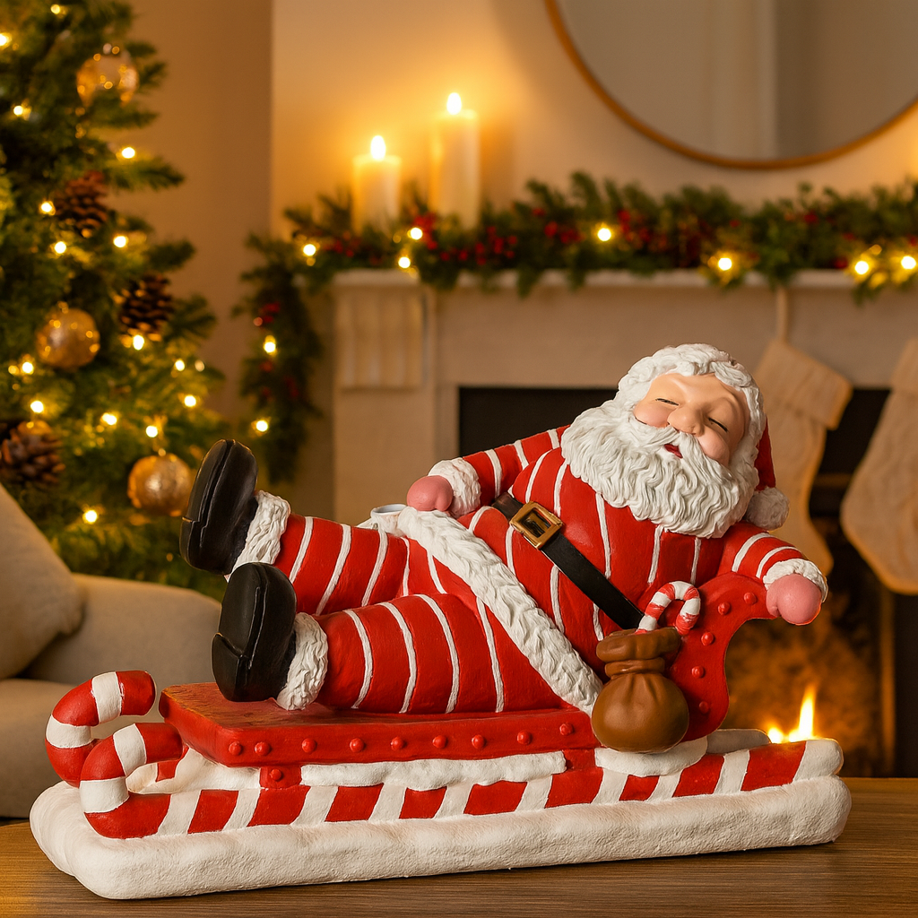 Statuetta con babbo natale sulla slitta decorazione per interno h 35 cm
