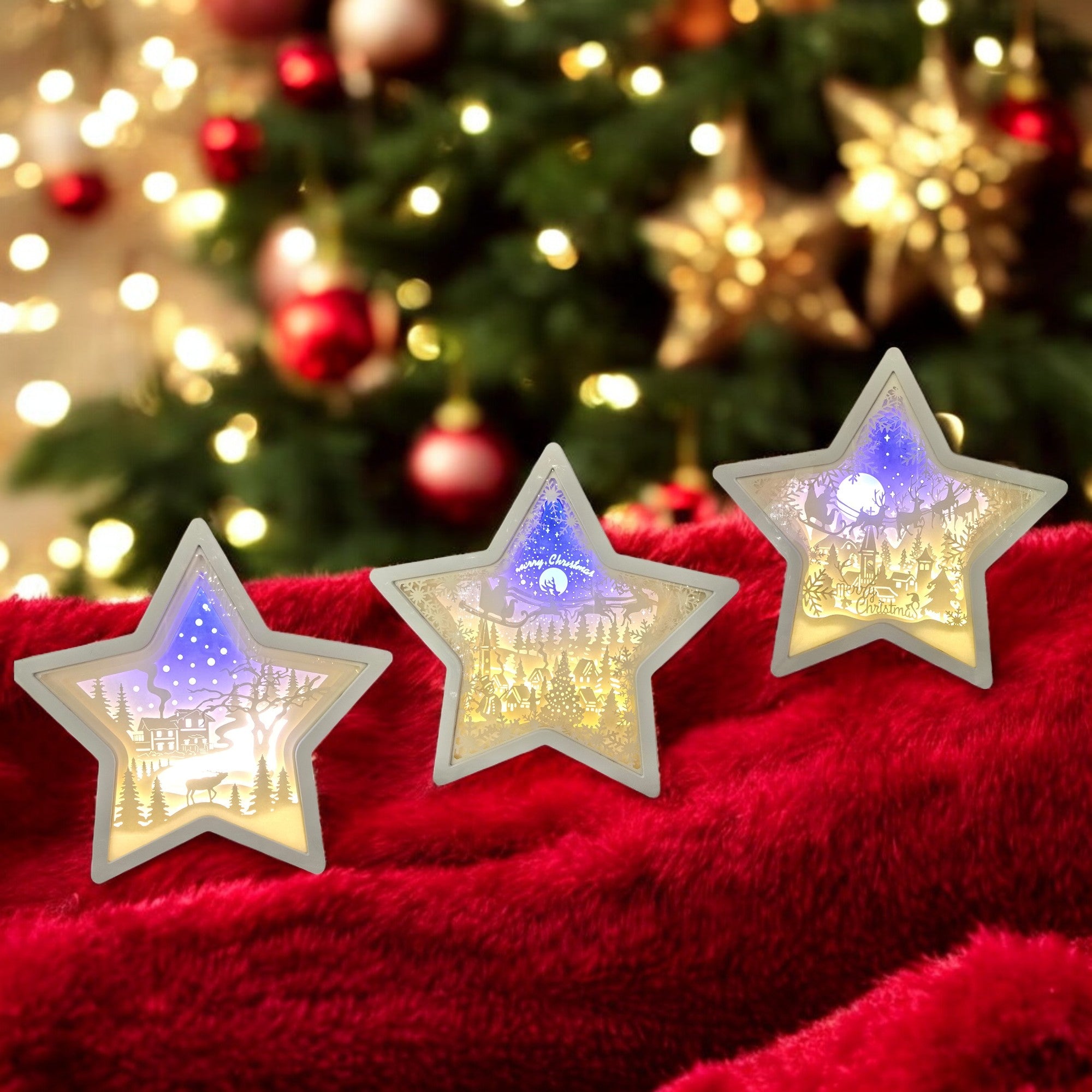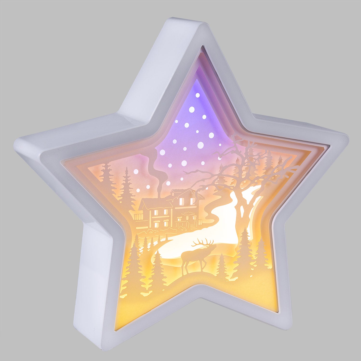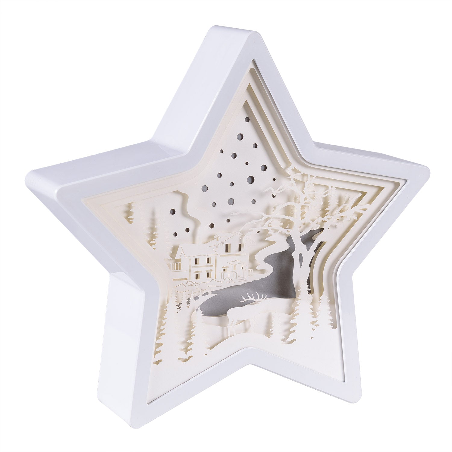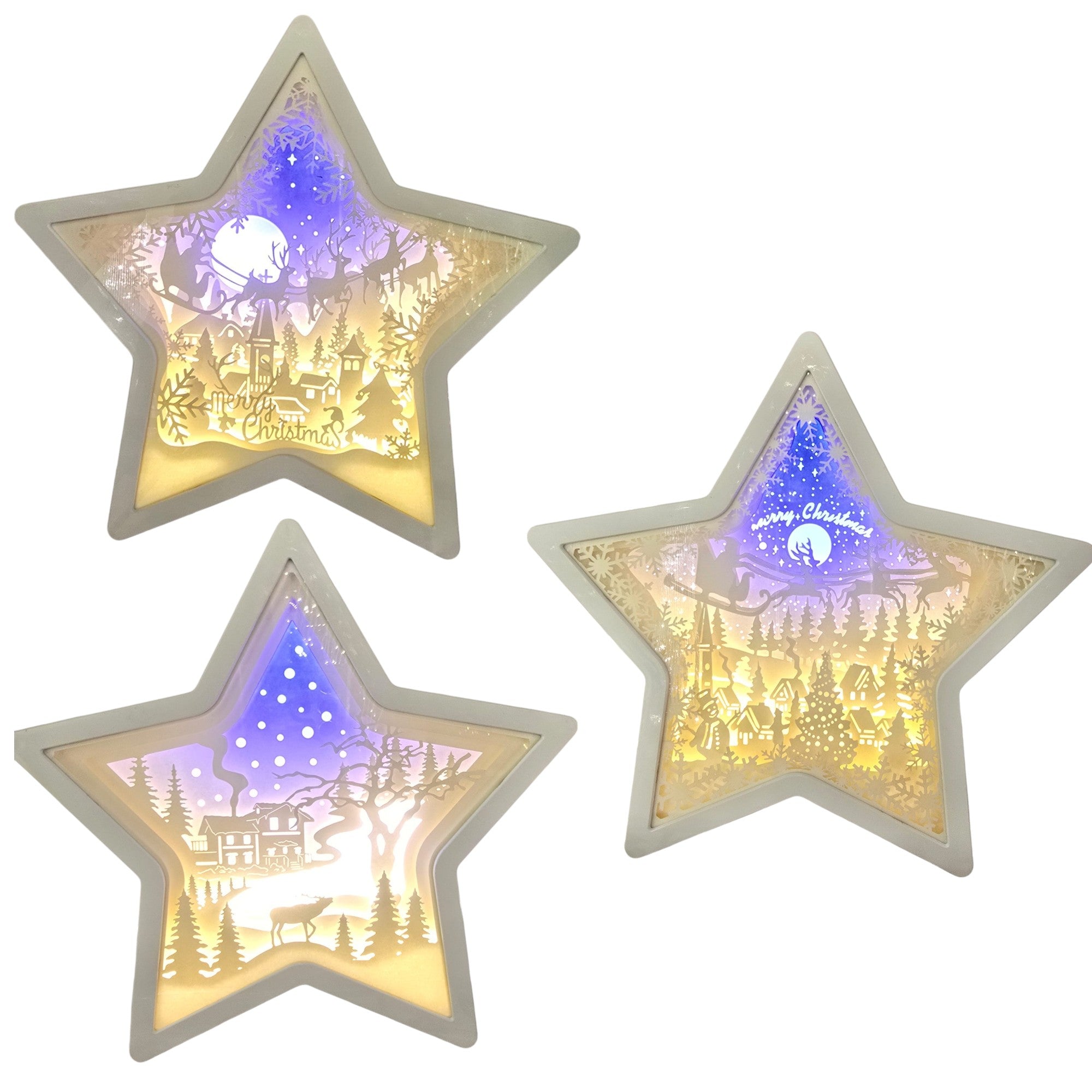 Stella luminosa a led luce bianco caldo con base in legno naturale decorazione natalizia