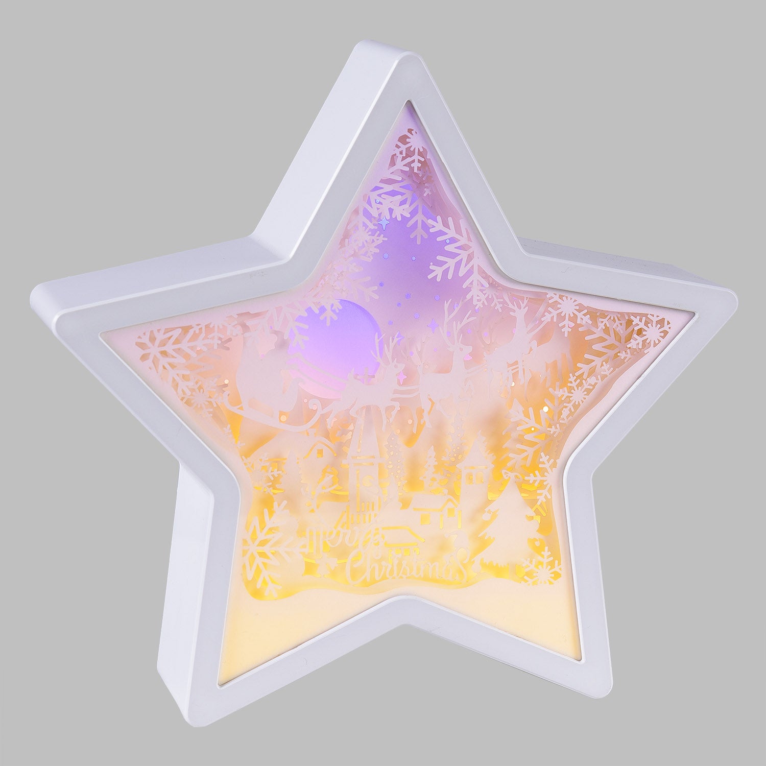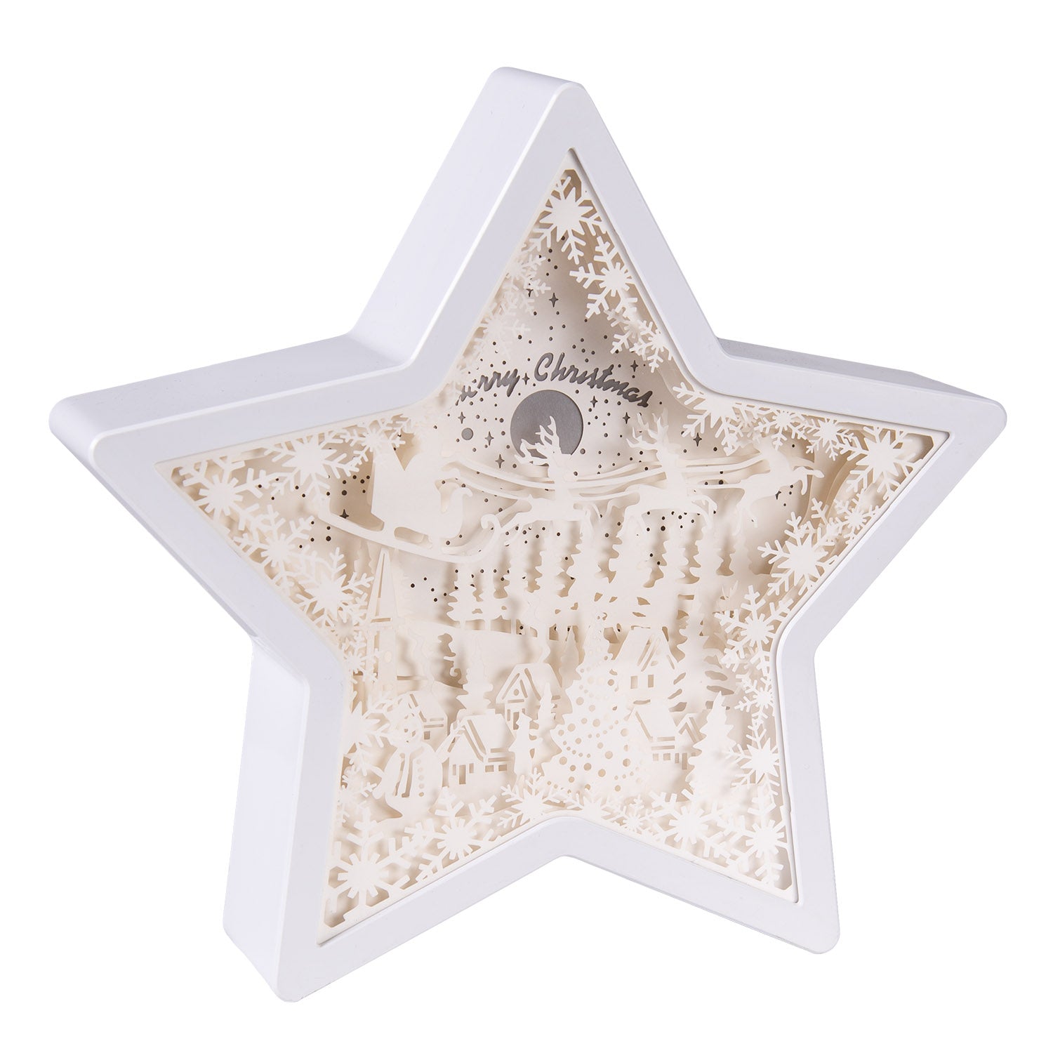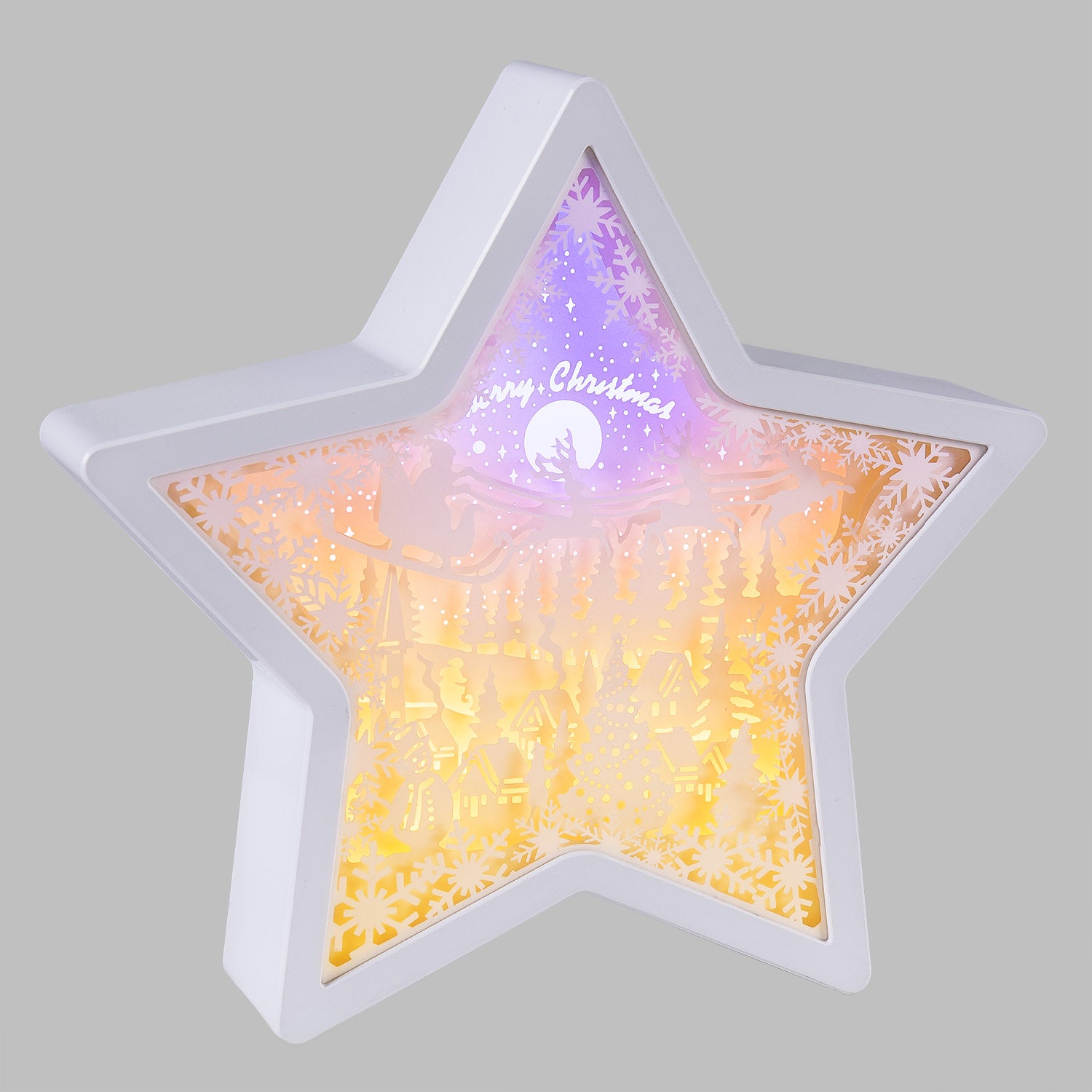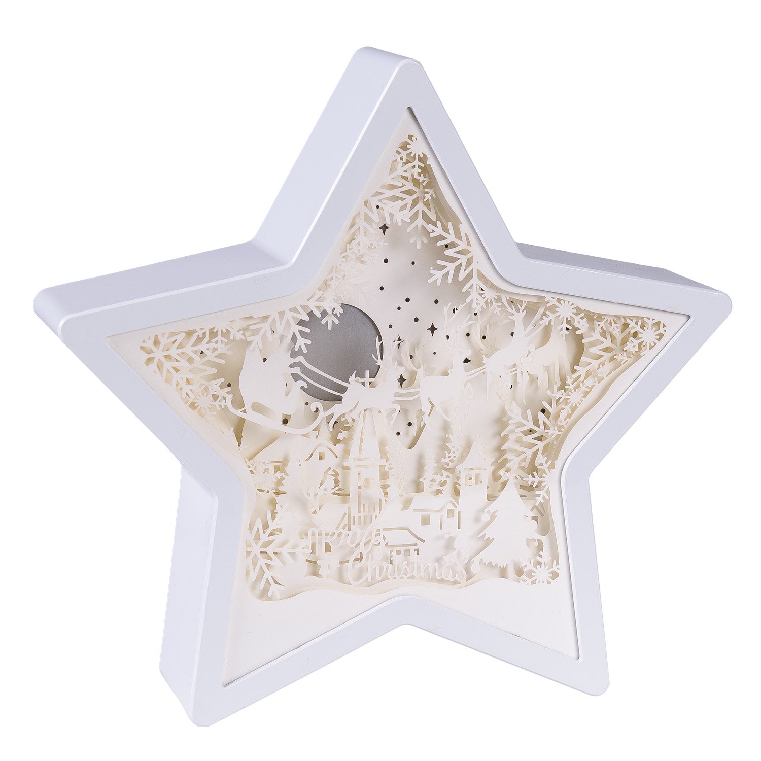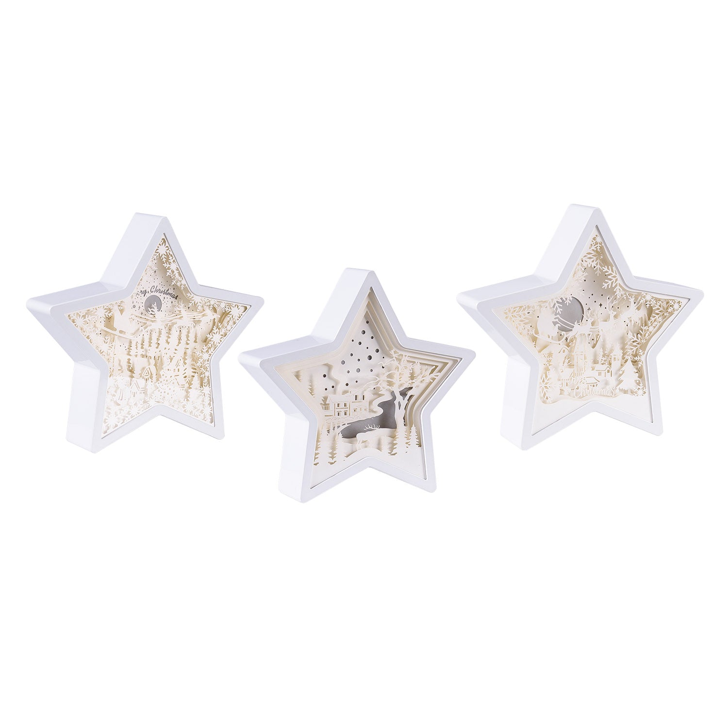 Stella luminosa a led luce bianco caldo con base in legno naturale decorazione natalizia