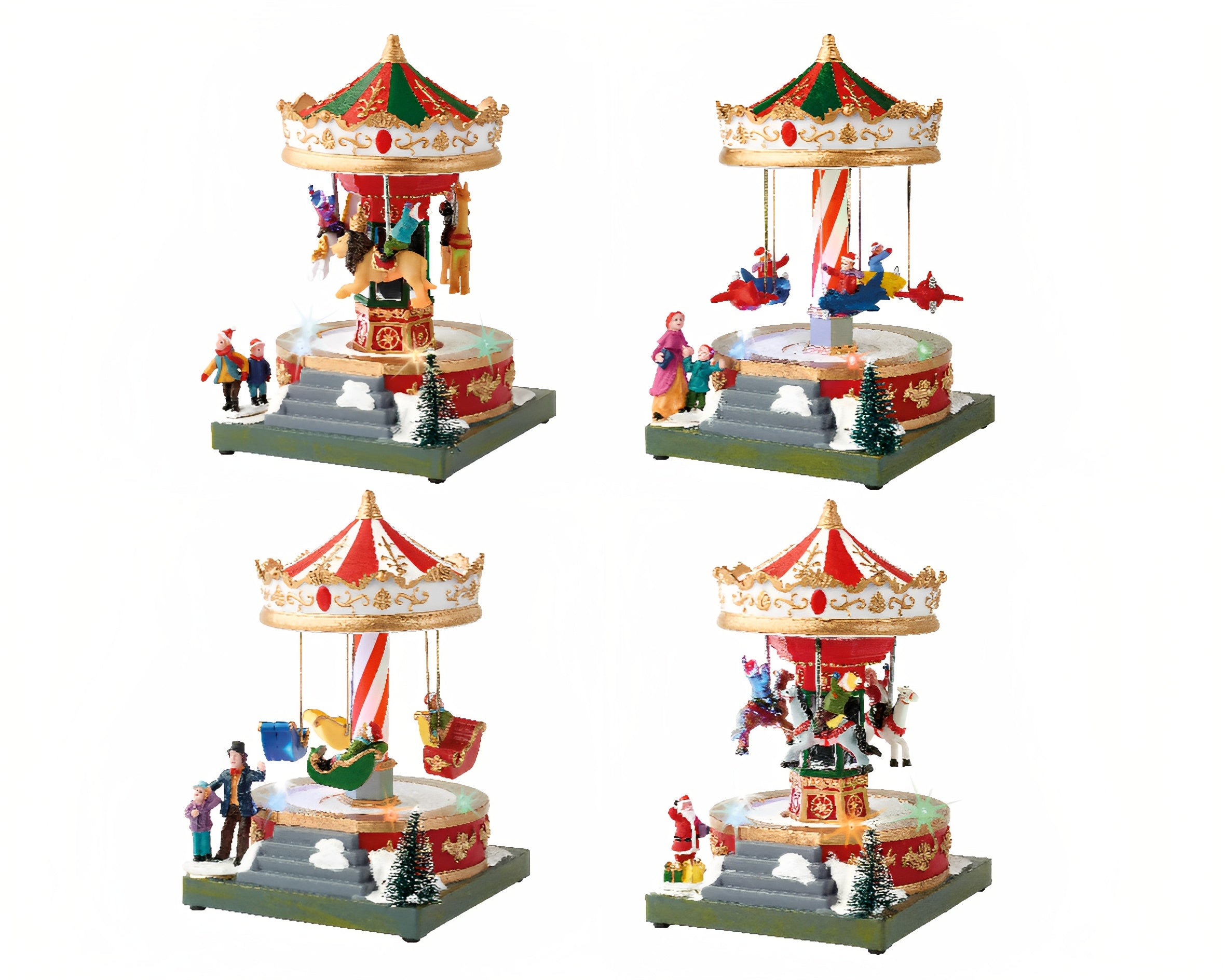 Carillon natalizio per villaggio di Babbo Natale con luci e suoni h 18.5 cm