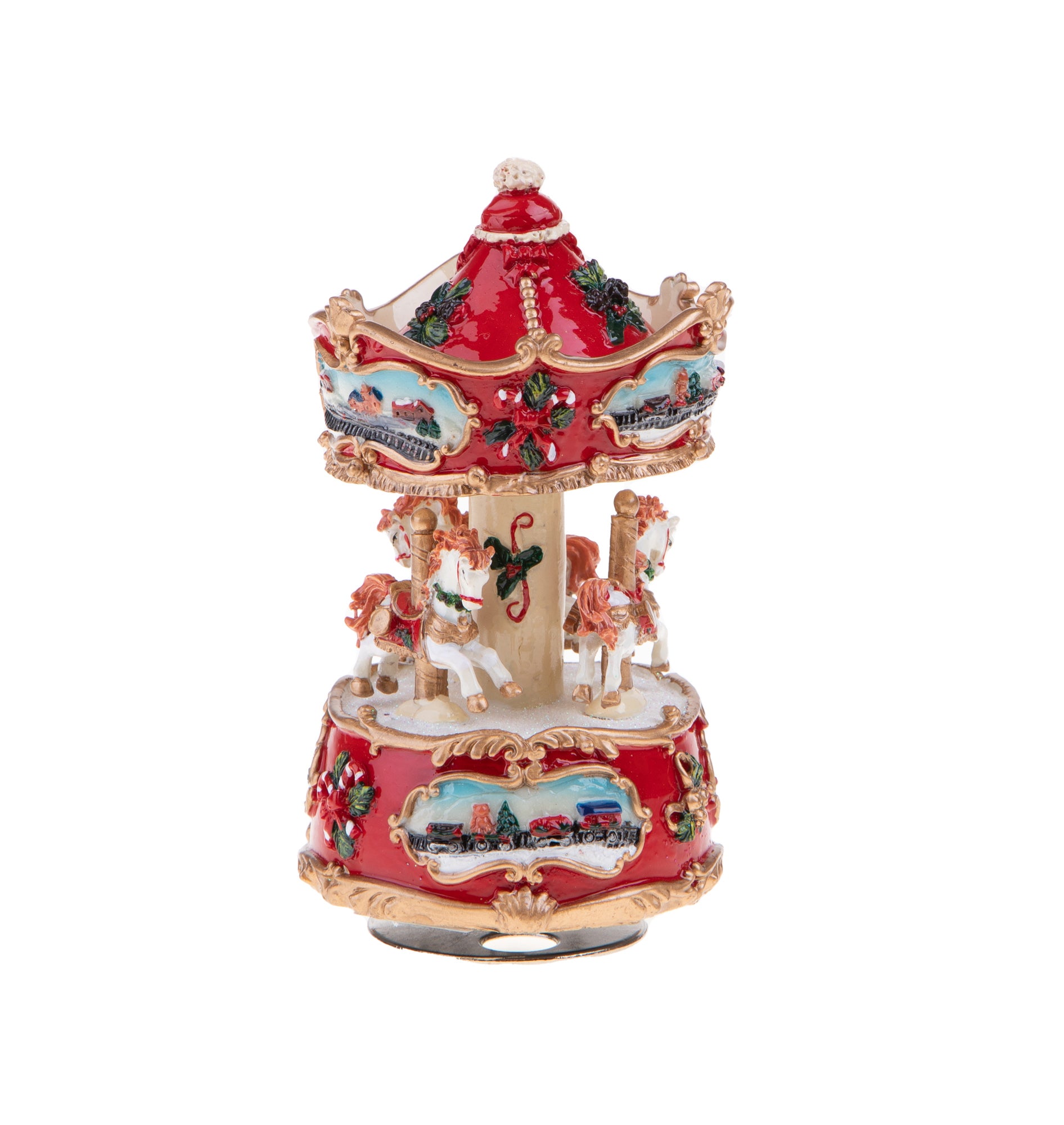 Statuetta giostra con carillon in resina per decorazioni natalizie