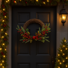 La corona dietroporta con bacche in plastica appendibile è un raffinato ornamento natalizio pensato per impreziosire ingressi, pareti o anche interni della casa durante il periodo delle feste.