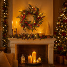 Corona dietroporta natalizia con luci e bacche per decorazioni ambienti