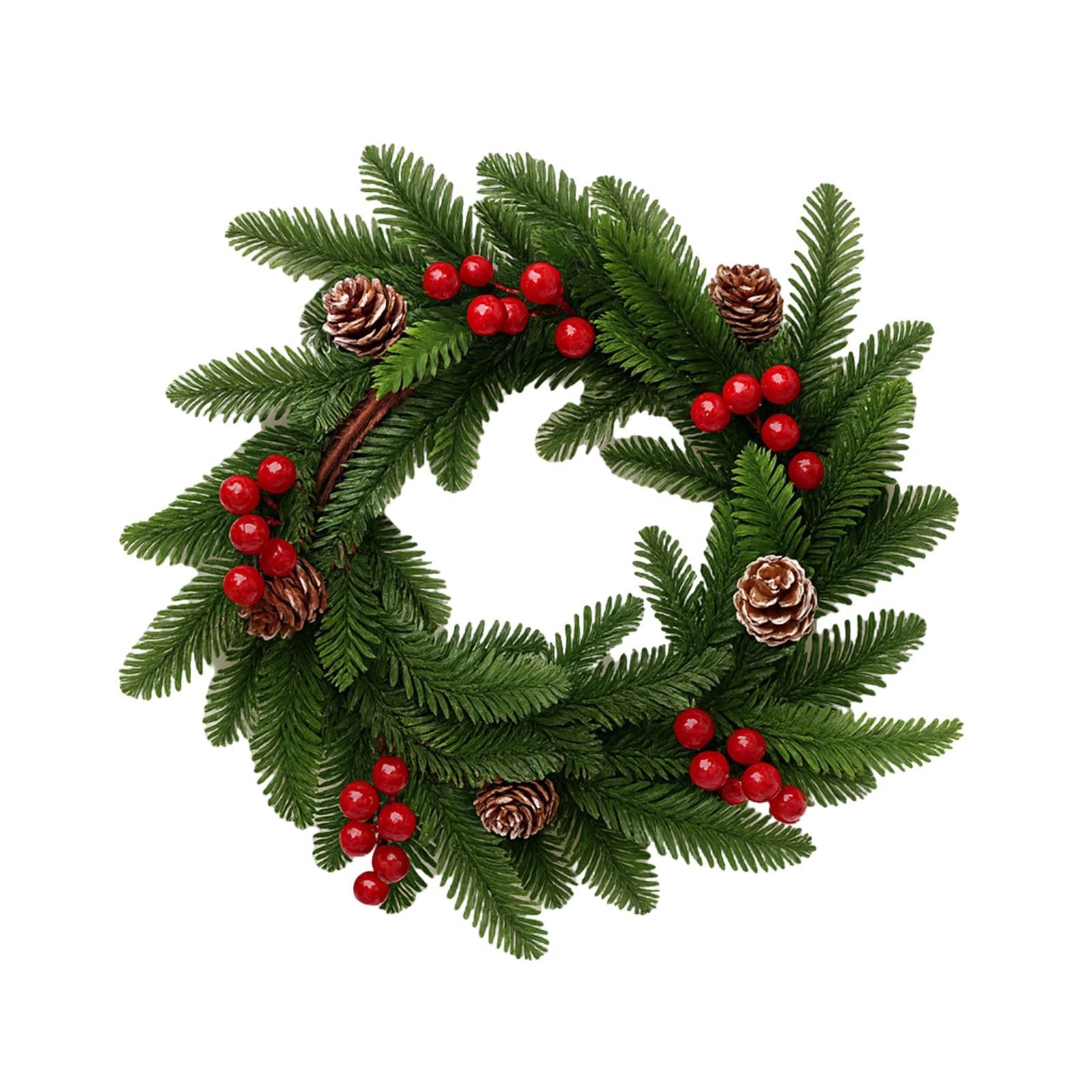 Corona tonda Ghirlanda Natalizia innevata con Bacche e Pigne Ø 35 cm