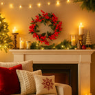 Dietroporta natalizio circolare floccato con bacche colore rosso da appendere