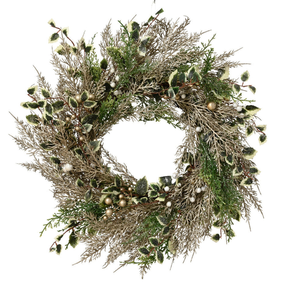 Ghirlanda natalizia colore champagne, decorazione da interno ed esterno per dietro porta
