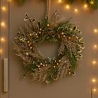 Dai il benvenuto alle feste con questa splendida ghirlanda corona natalizia, perfetta per decorare porte d’ingresso, pareti o porticati. Il suo design classico ed elegante, arricchito da dettagli realistici come foglie, rami e bacche, crea subito un’atmosfera calda e accogliente, sia dentro casa che all’esterno.