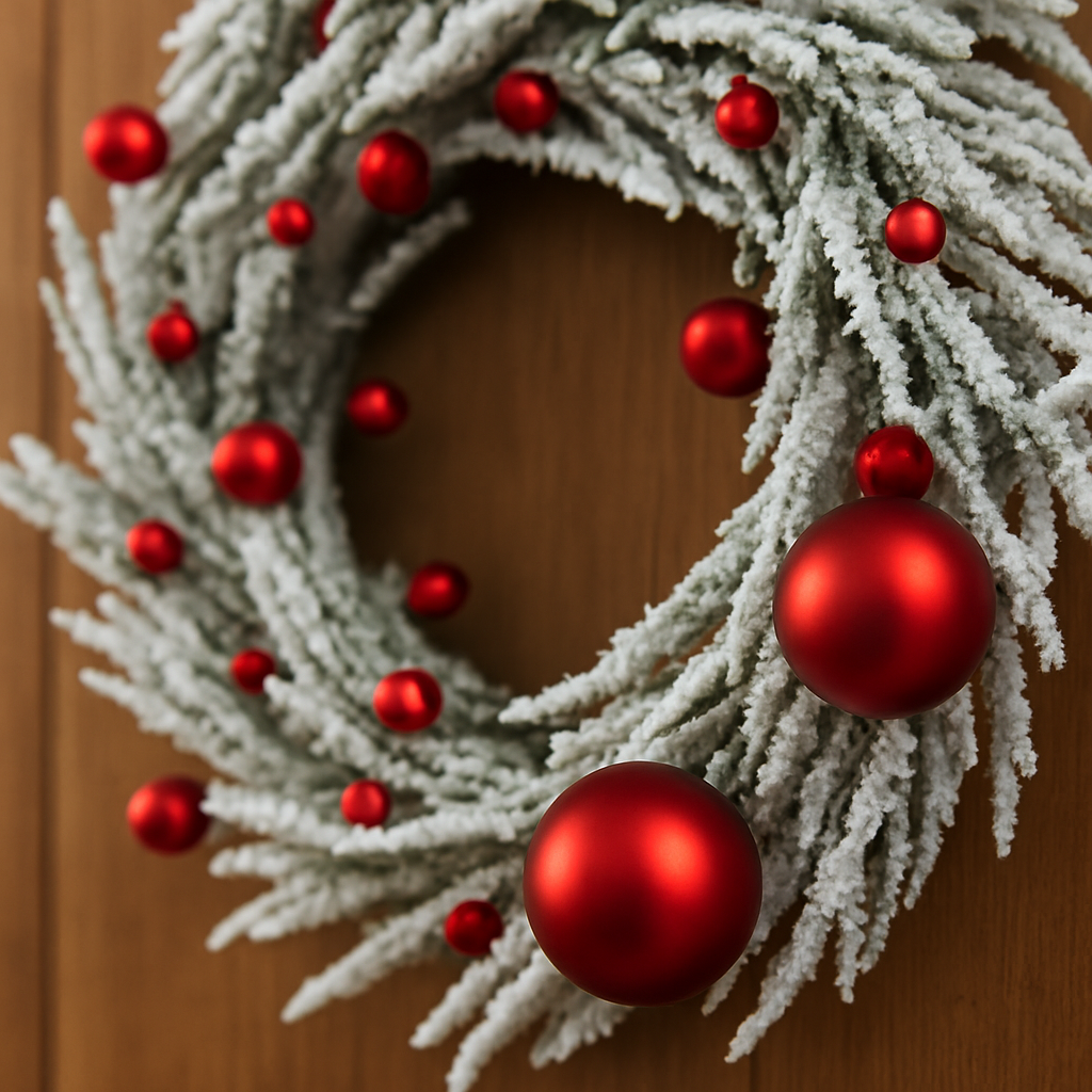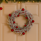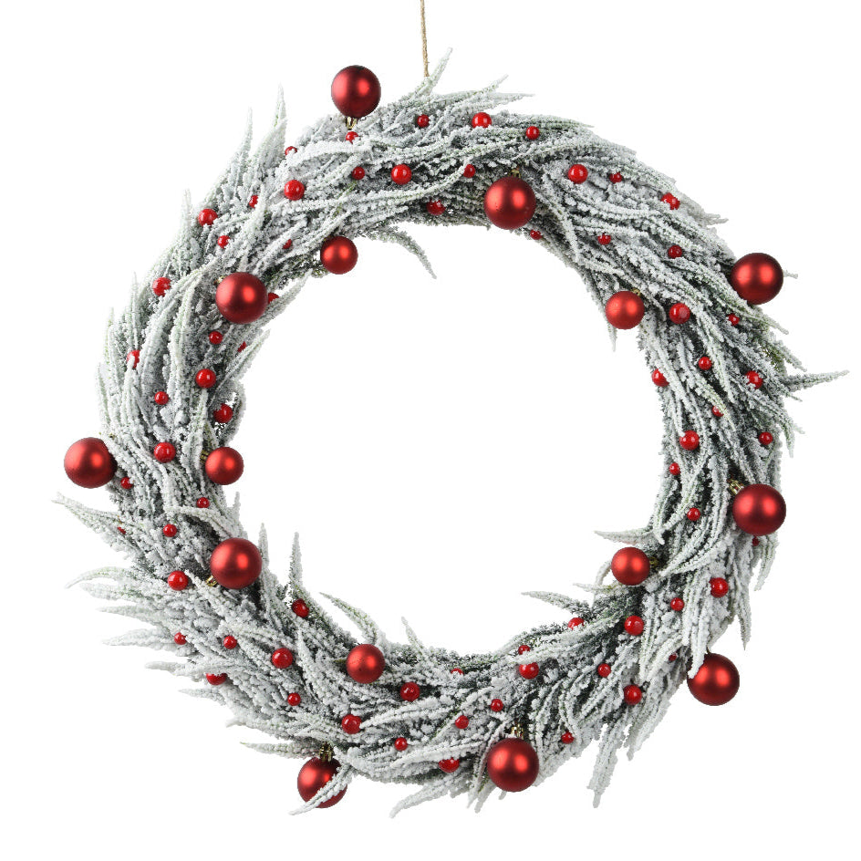 Ghirlanda natalizia innevata con palline rosse, da interno ed esterno per dietro porta