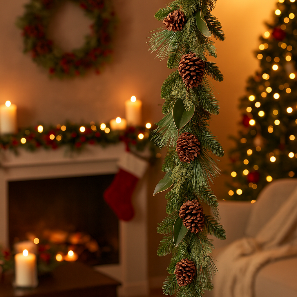 Ghirlanda decorativa con bacche e foglie per decorazioni natalizie 133 cm