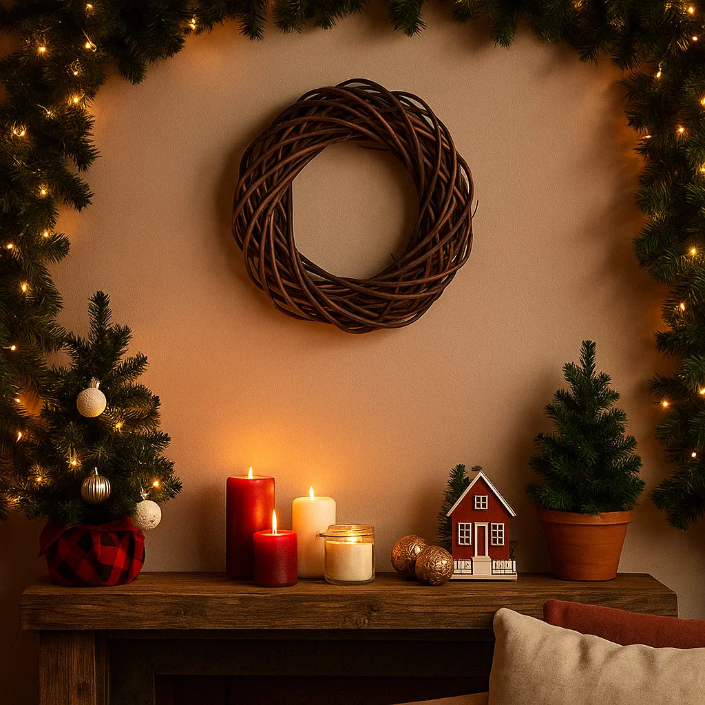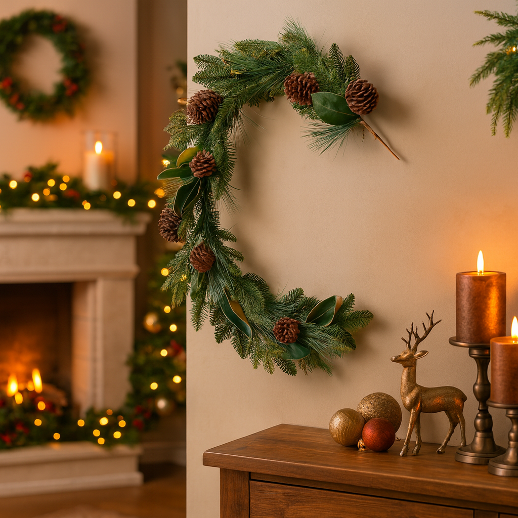 Corona retro dietro porta ghirlanda natalizia ø 45 cm da decorare con luci e palline