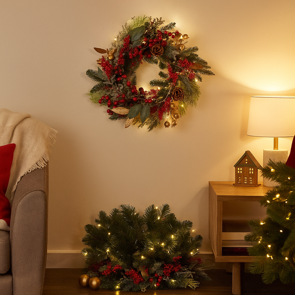 Ghirlanda tonda floreale con bacche corona natalizia, dietro porta da 30 cm