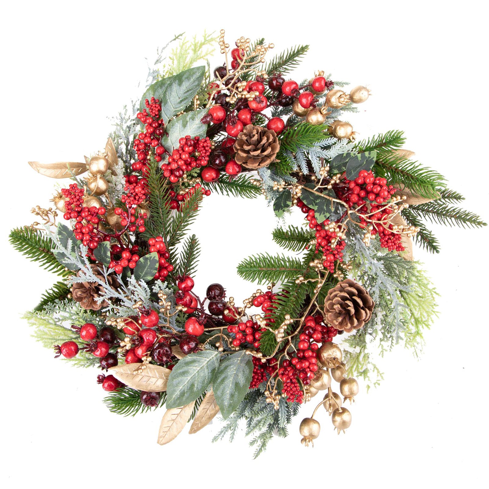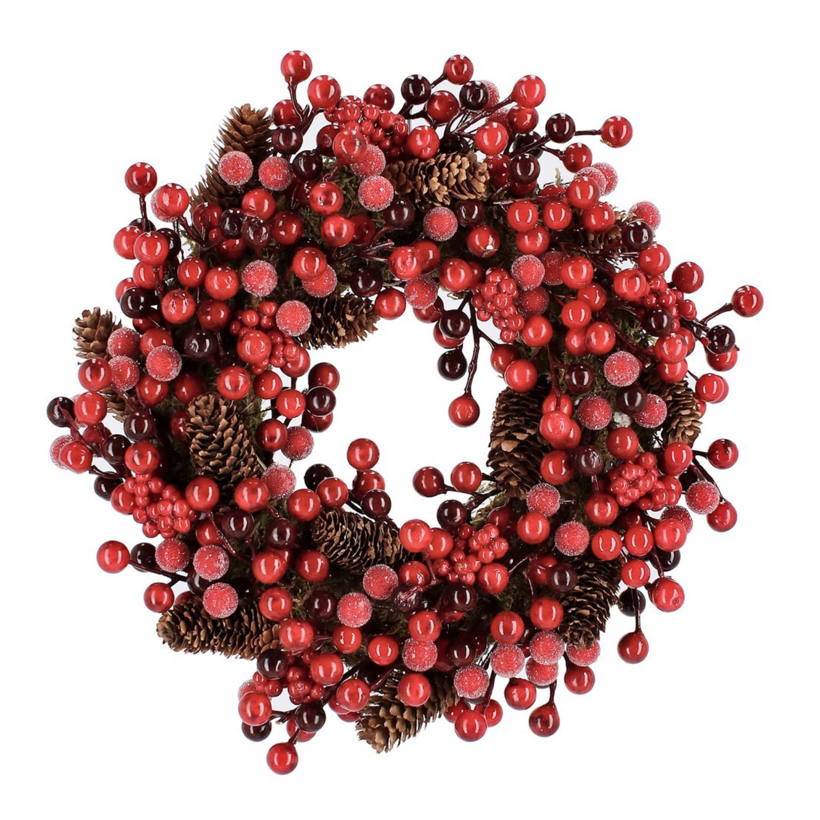 Ghirlanda retro porta natalizia decorato con bacche e pigne Ø 36 cm