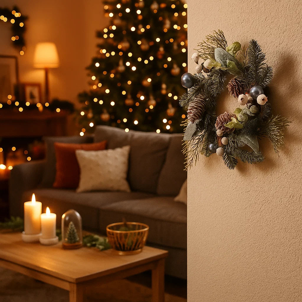 Corona natalizia con corda per appendere da dietro porta per decorazioni natalizie Ø 35 cm