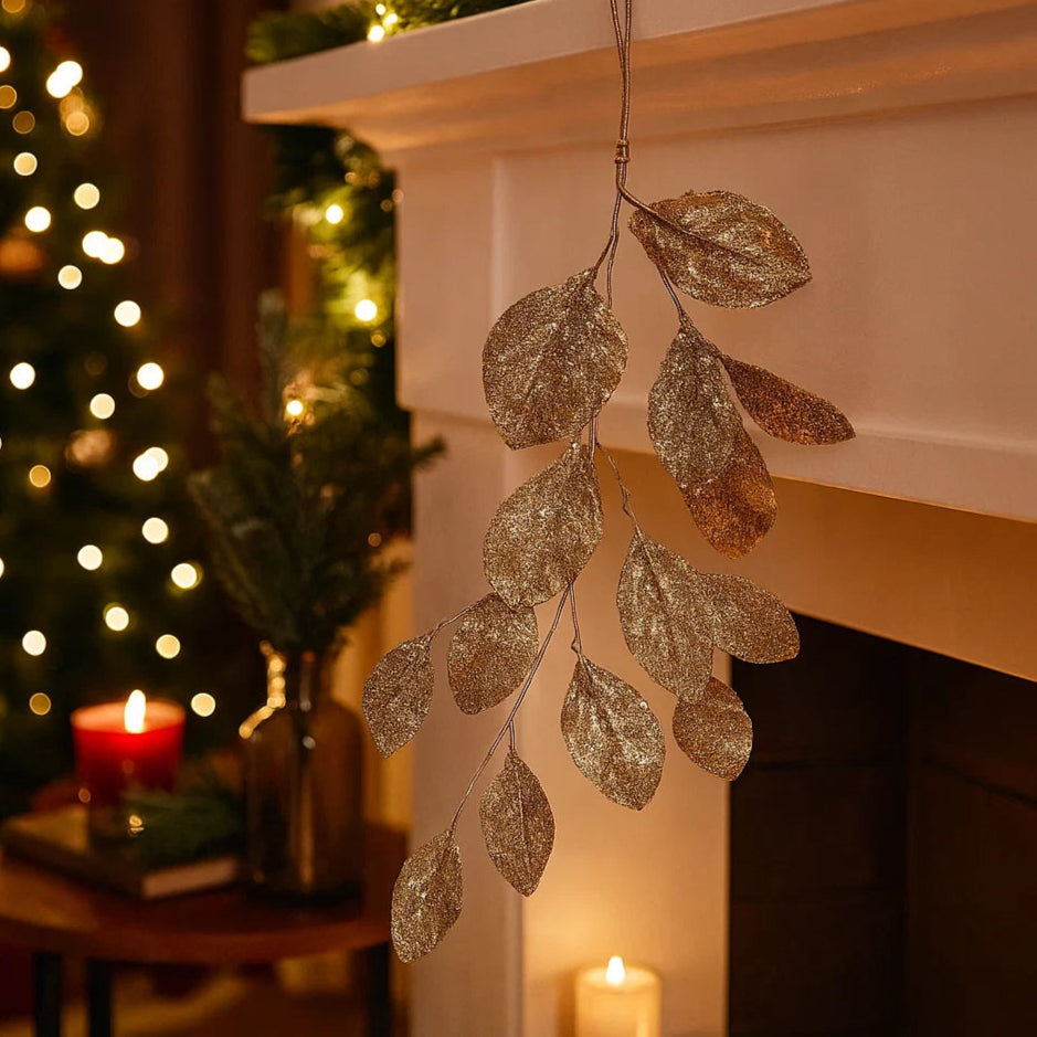 Festone natalizio ghirlanda color Oro con foglie, decorazione da 190 cm