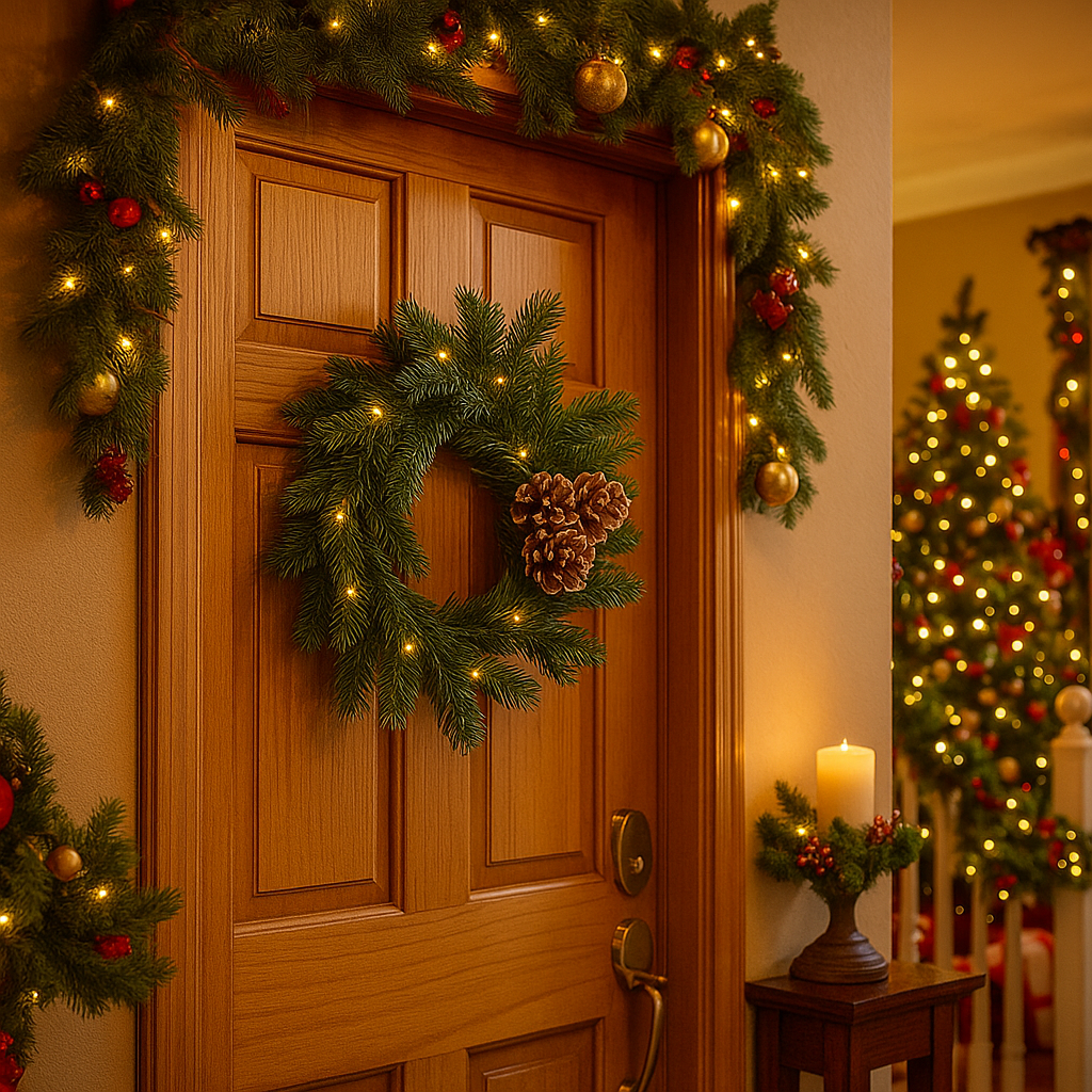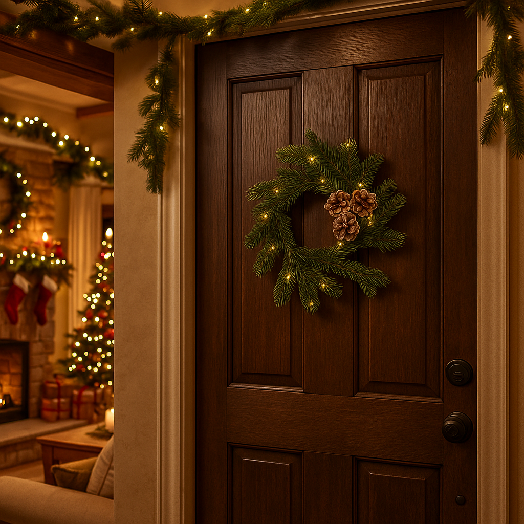 Ghirlanda corona natalizia, decorazione da interno ed esterno per dietro porta