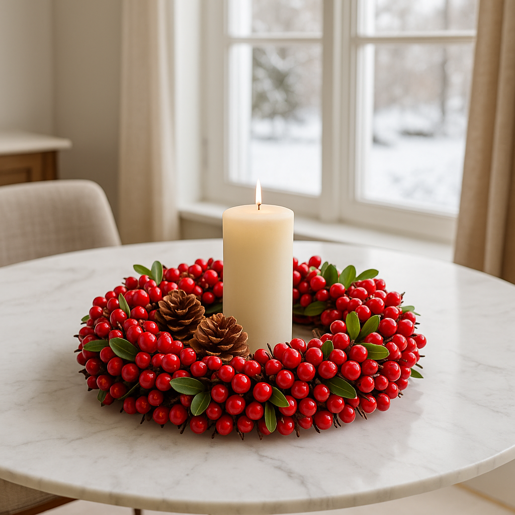 Ghirlanda per decorazione natalizia di bacche rosse dal diametro di 35 cm
