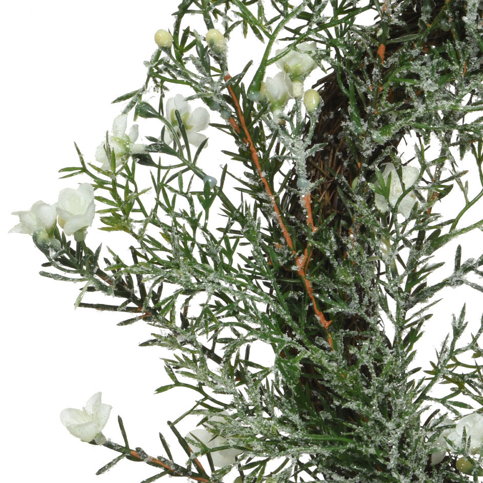 Ghirlanda tonda natalizia congelata color Verde, dietro porta da 40 cm