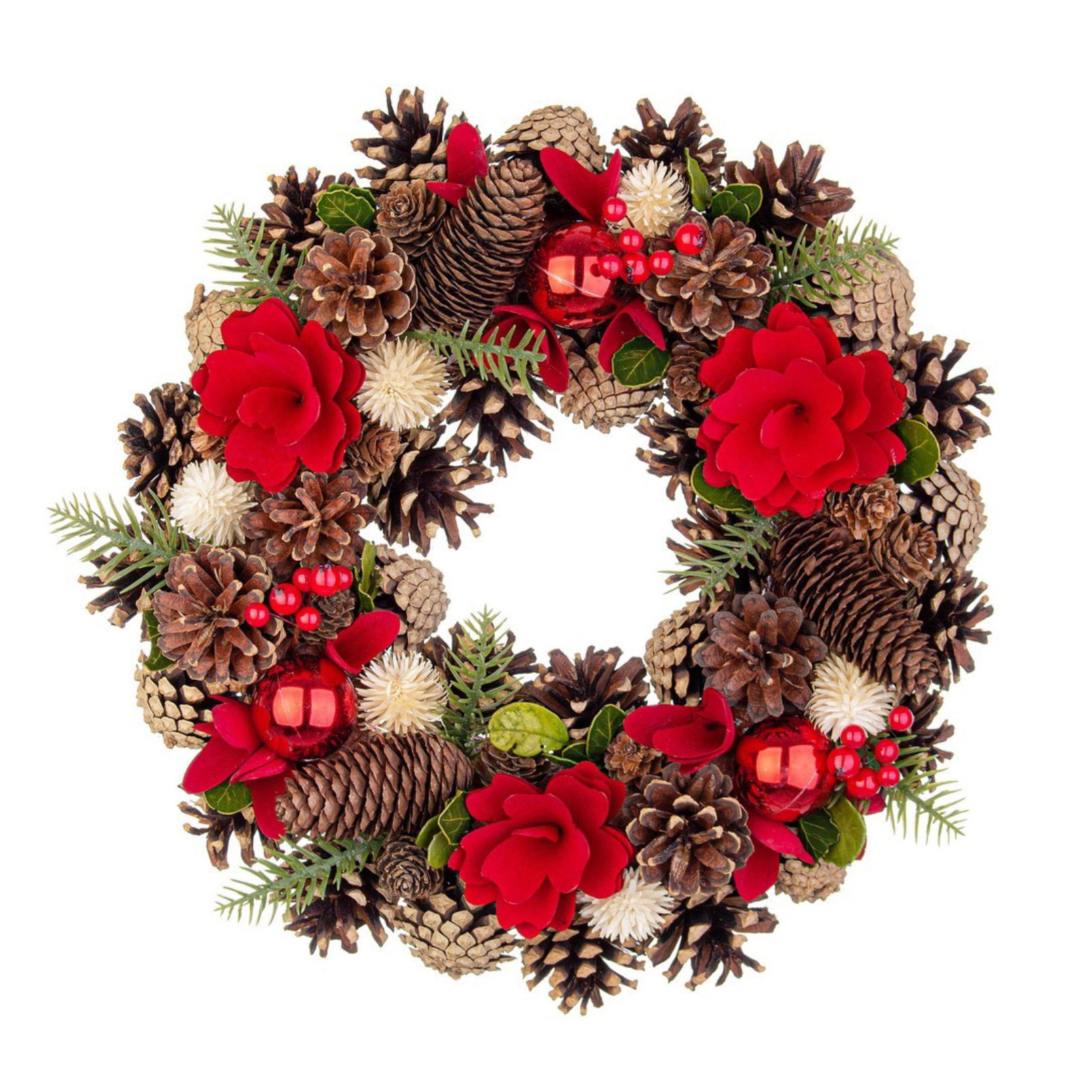 Ghirlanda tonda corona dietro porta con bacche pigne Ø 40 cm