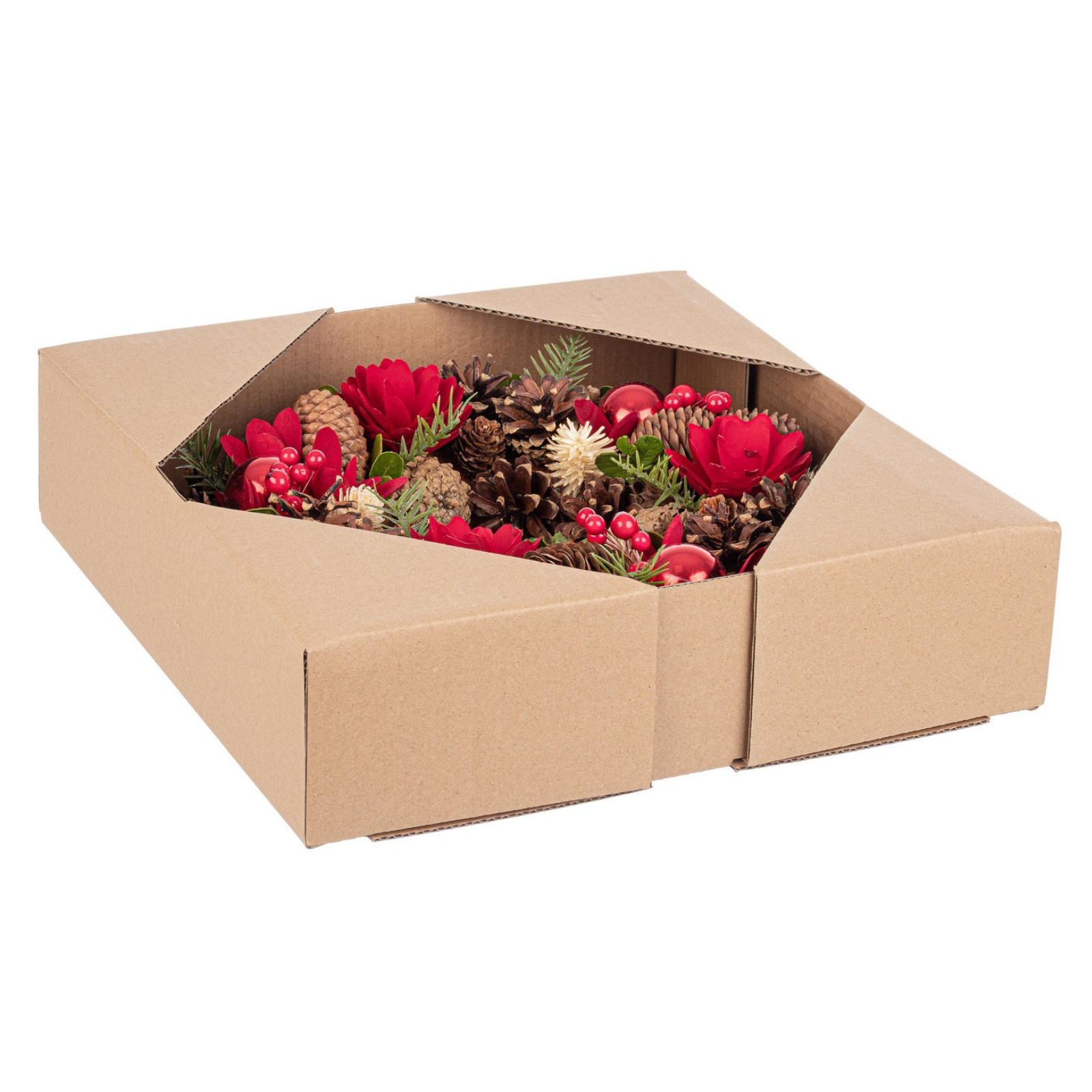 Corona natalizia "Alissa" di pigne e polisterolo, rosso-naturale