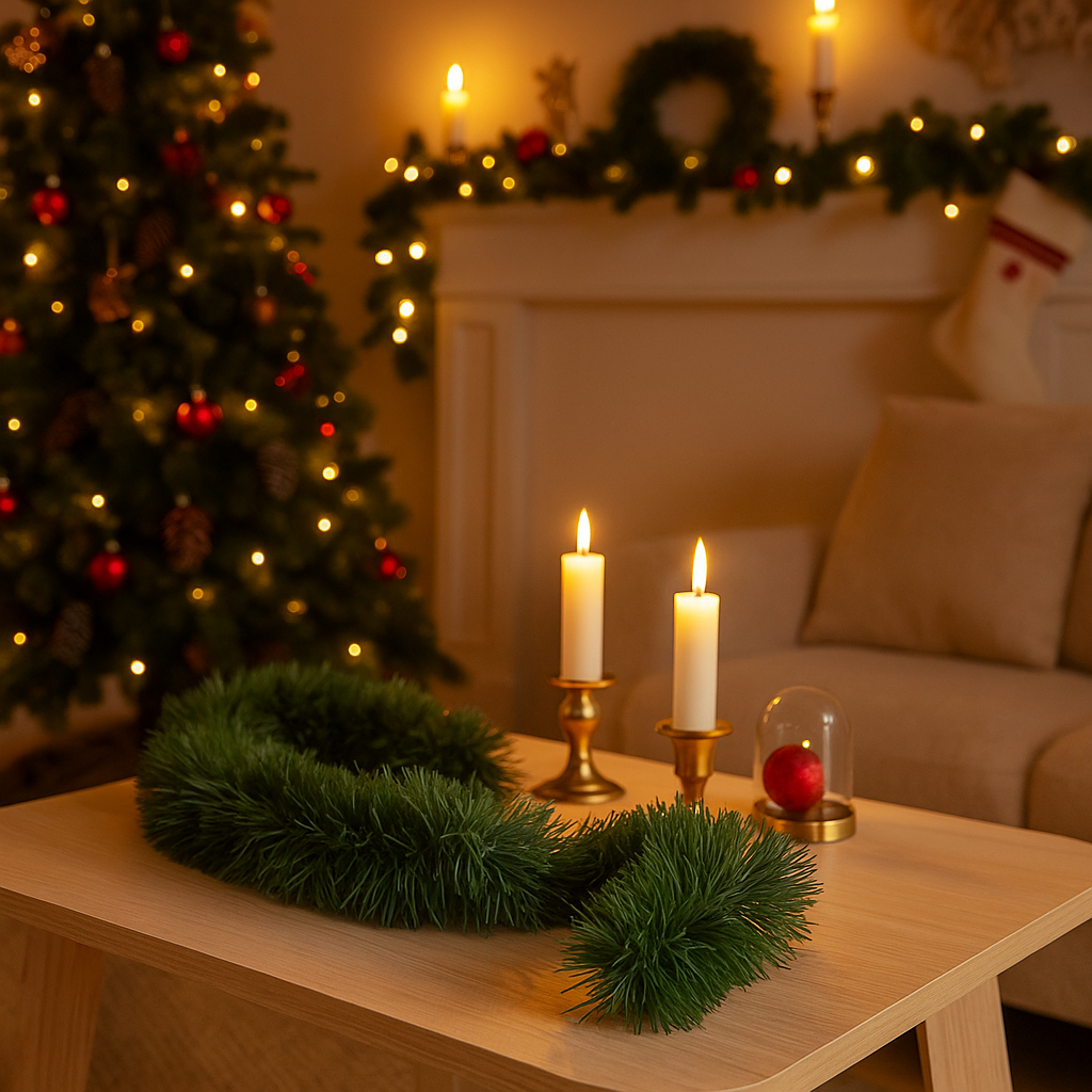 La ghirlanda natalizia in PVC è un'opzione popolare perché richiede poche cure e manutenzione. Il PVC è un materiale resistente e durevole che mantiene la sua forma e il suo colore nel tempo, senza dover preoccuparsi di appassire o seccare come il fogliame naturale.