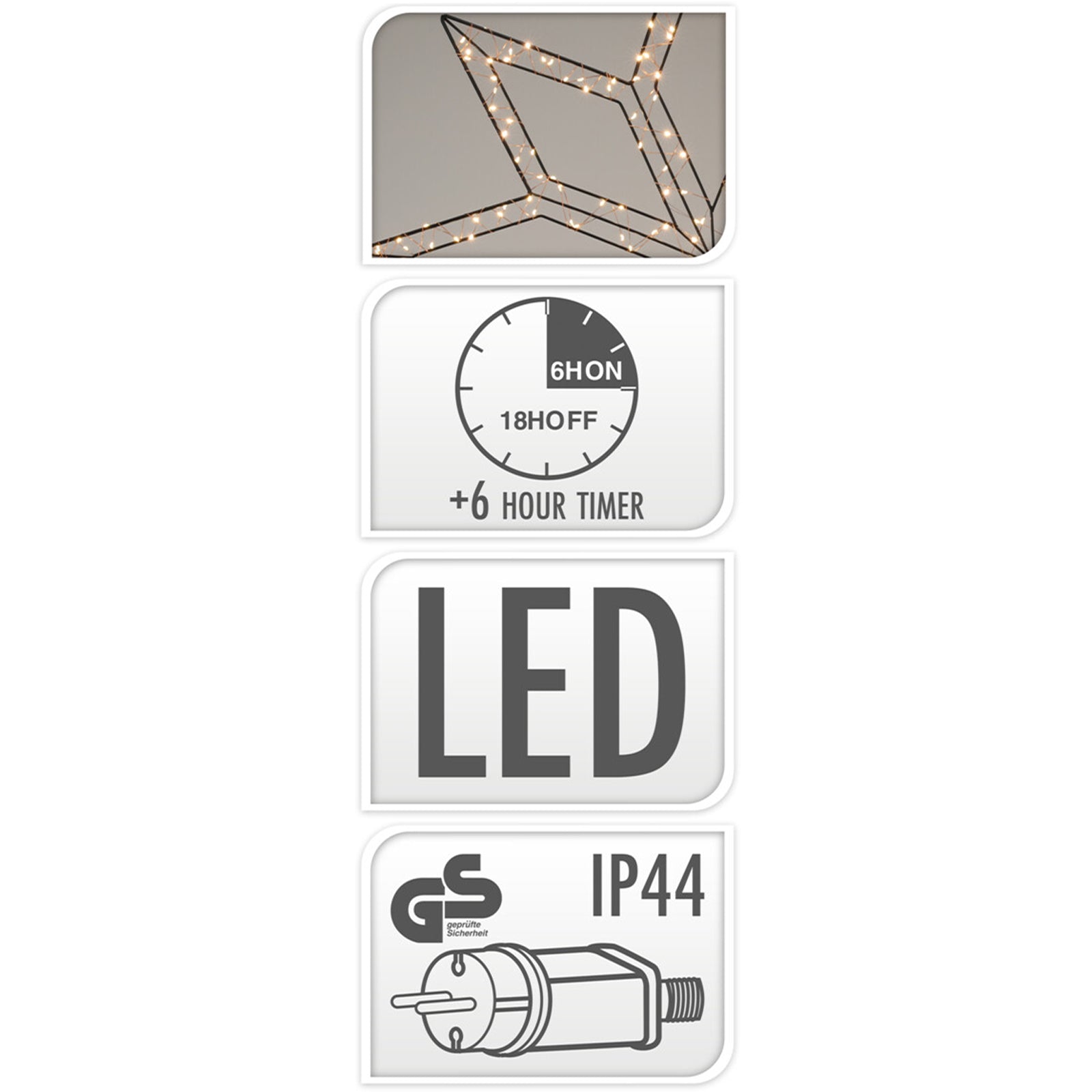 Questo prodotto è perfetto per creare un'atmosfera festiva e accogliente nel tuo giardino o sulla tua facciata. La sua figura elegante e la luce brillante lo rendono un elemento decorativo molto apprezzato durante le vacanze invernali.