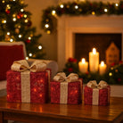 Le luci LED integrate sono posizionate all'interno di ciascuna scatola regalo e sono alimentate da batterie, il che rende le decorazioni completamente autonome e senza bisogno di cavi visibili.