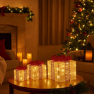 Set 3 pacchi regalo in resina luminoso color bianco e rosso per uso interno ed esterno