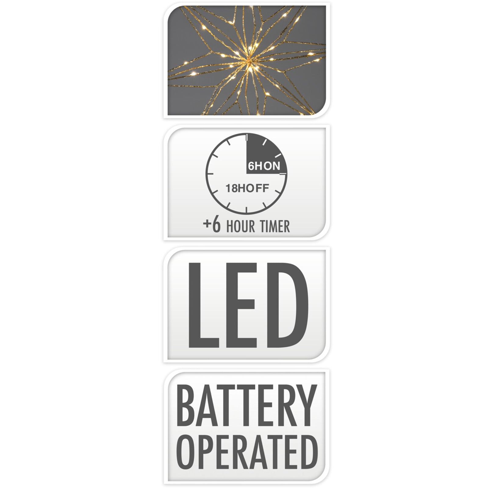 Stella 3D in metallo con 80 microled bianco caldo Ø 1,5 mm decorazione interni