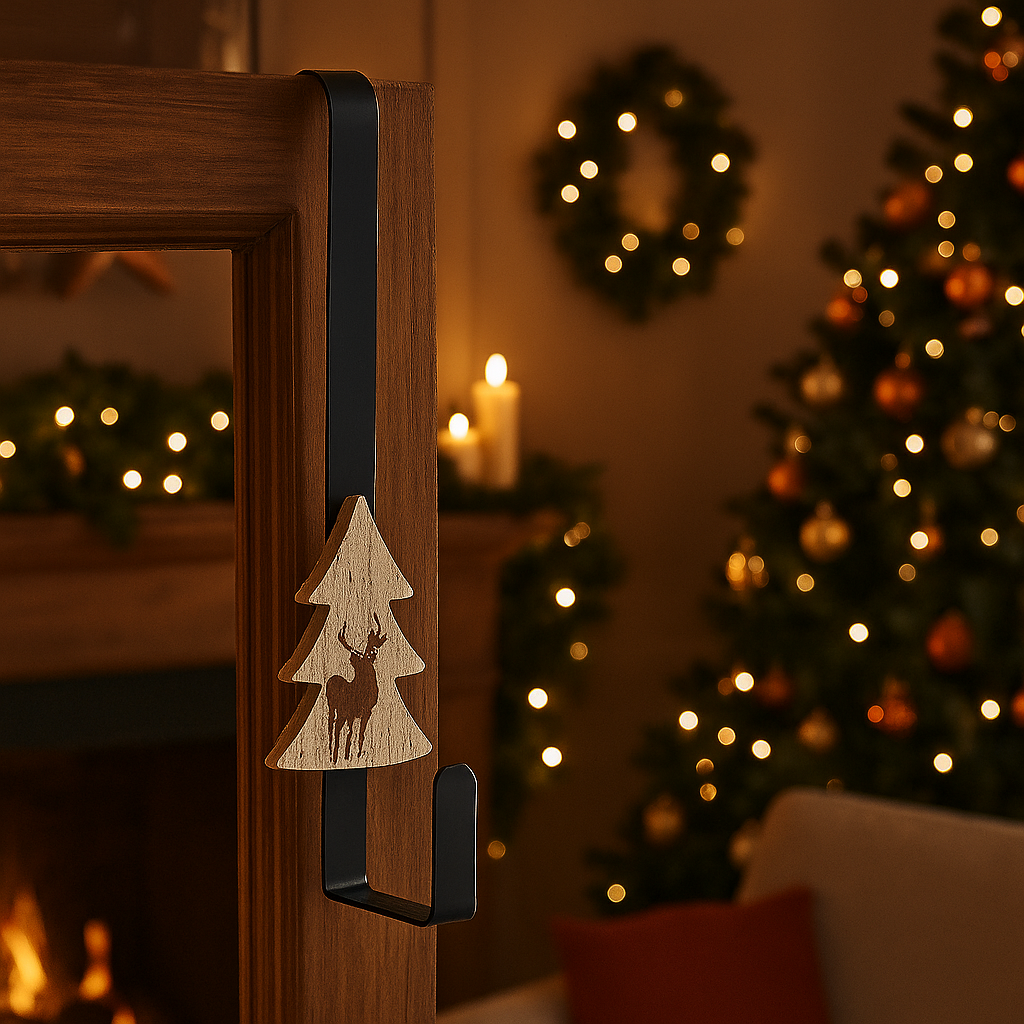 Rendi unico ogni dettaglio delle tue festività con questo elegante gancio natalizio in metallo, impreziosito da una decorazione a forma di albero di Natale. Pensato per sostenere calze della Befana, piccoli regali o addobbi decorativi, unisce funzionalità e stile in un accessorio solido e decorativo. Il suo design slanciato lo rende perfetto per caminetti, mensole o mobili d’ingresso, aggiungendo un tocco raffinato e festoso a ogni ambiente.