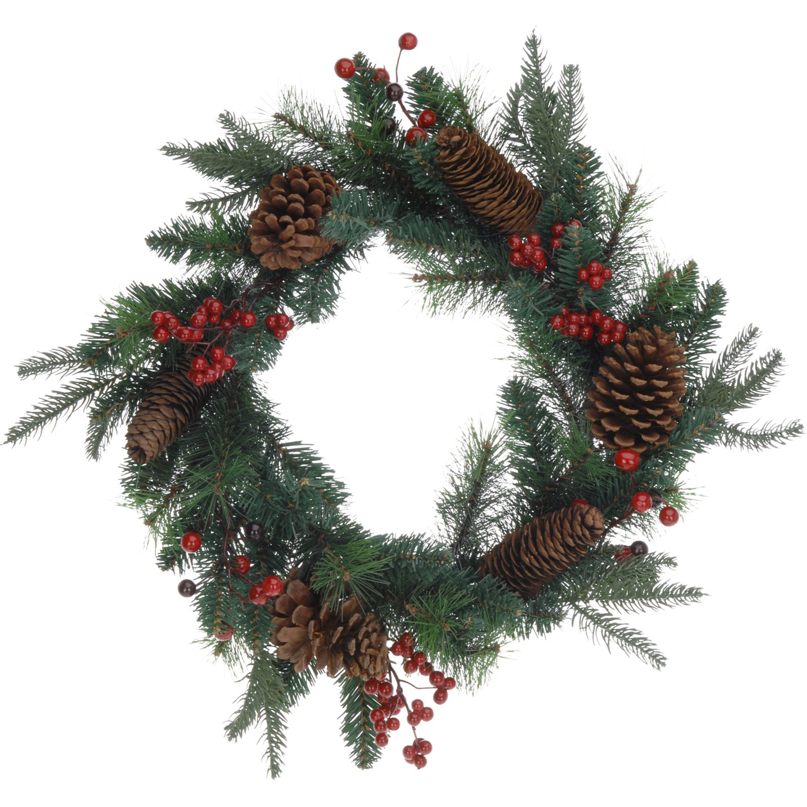 Corona Natalizia decorativa, con pigna e bacche, centrotavola in polipropilene, da 45 cm