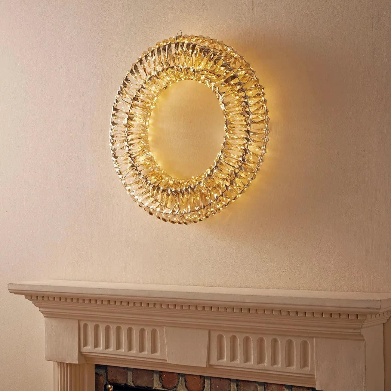 Le luci LED calde integrate nella corona emettono una luce morbida e accogliente che crea un'atmosfera calda e festosa.